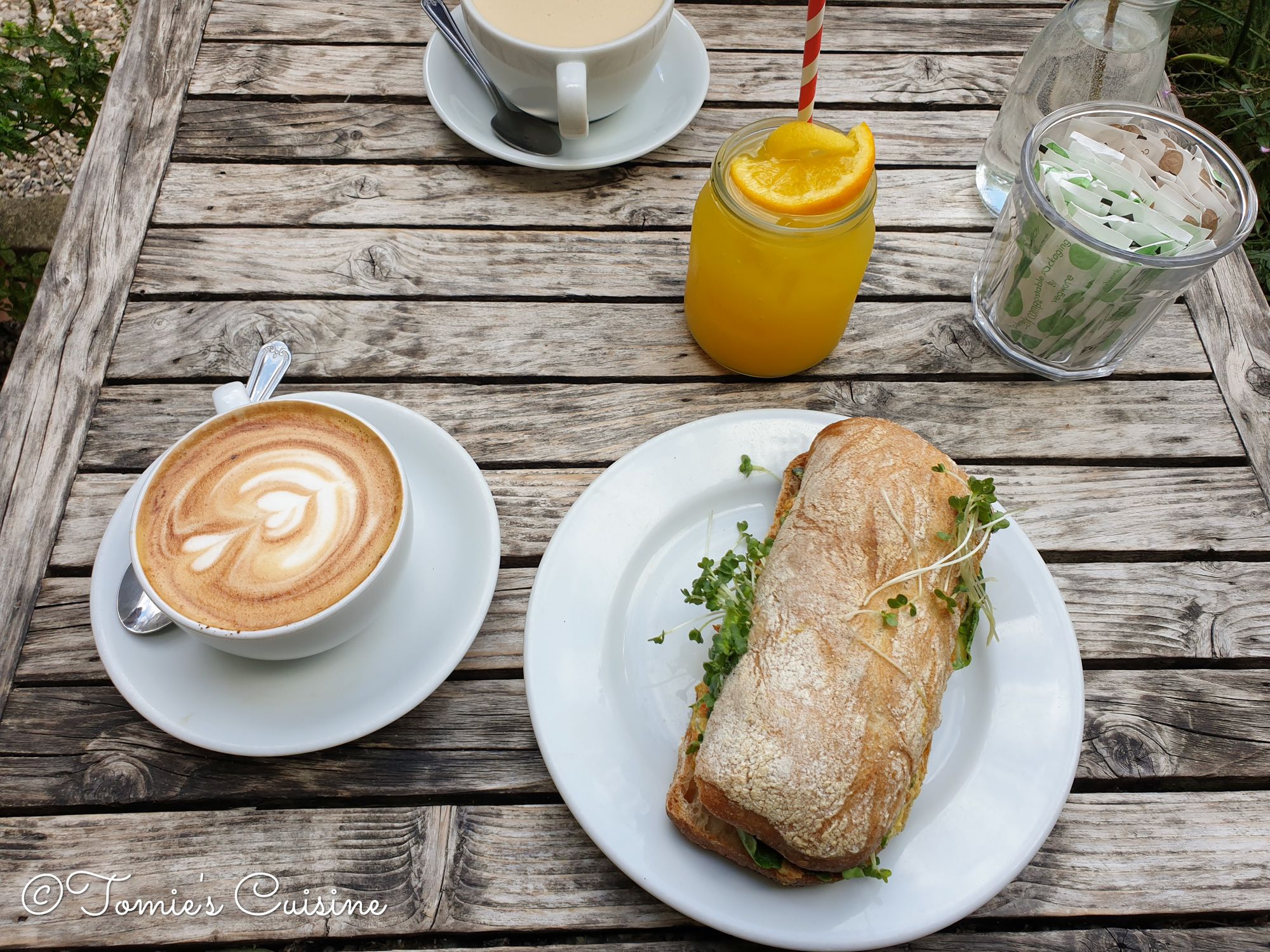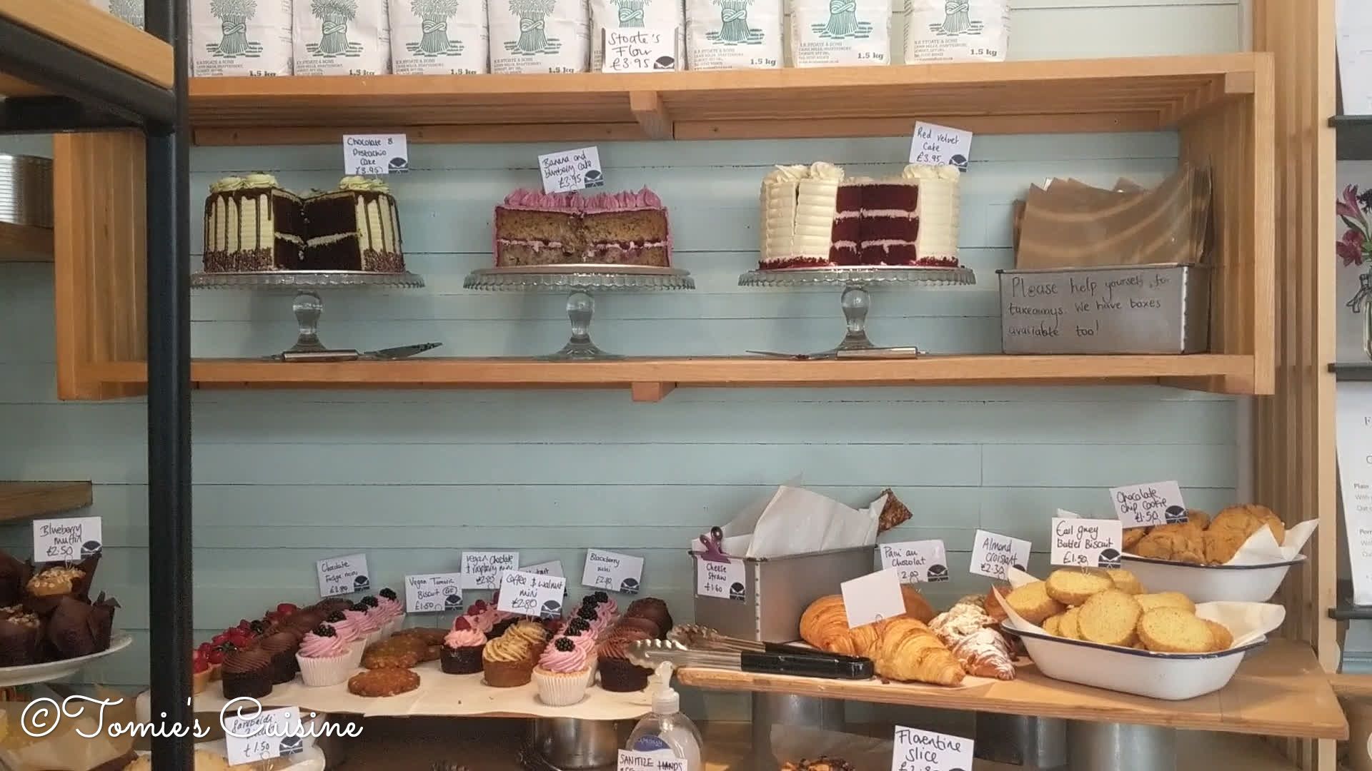 We had breakfast there on the second day in their lovely back garden. When you walk into the shop, you’ll see a lot of freshly baked bread and pastries. At the counter, there are different kinds of salad and sandwiches. I had quiche, and my husband had a sandwich. We bought a sourdough to bring back to London too.