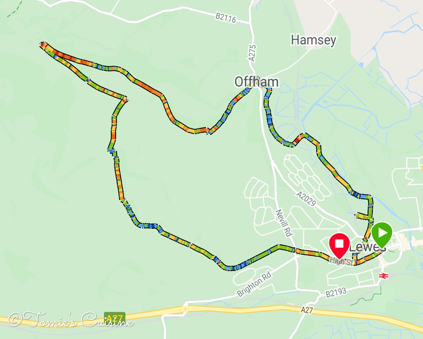 When we searched about Lewes, we found many hiking tracks around the South Downs national nature reserve. We had to make one that we could finish in a day and still see a bit of everything. We made this hiking track based on these criteria with the Garmin app, and we went on the second day.
