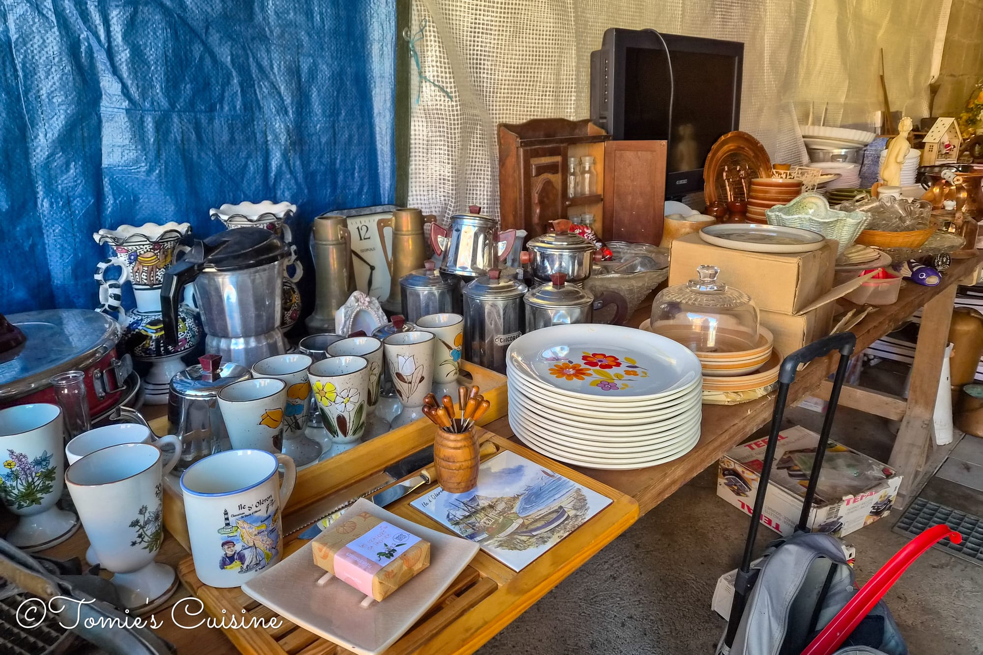 The festival was great, but my initial plan to get there was to see the brocante (flea market). Unfortunately, it was only on Saturday. However, there were still some houses doing a “Vide maison”, which literally means “empty house”, so it’s a house clearance, or garage sale. These houses were still registered with the mairie for this village-wide event, so some had stands on the pavement, while others held them in their courtyards. We went to a small farm next to where we parked our car. I had never been to one like that before, but this house had a lot of great vintage items for a reasonable price.