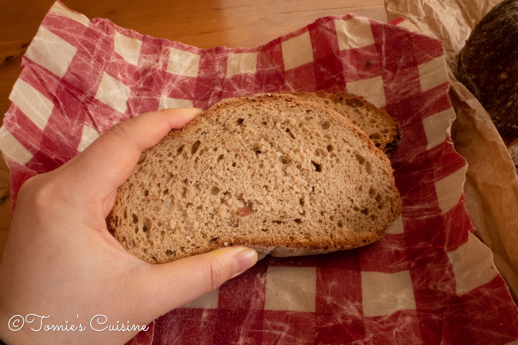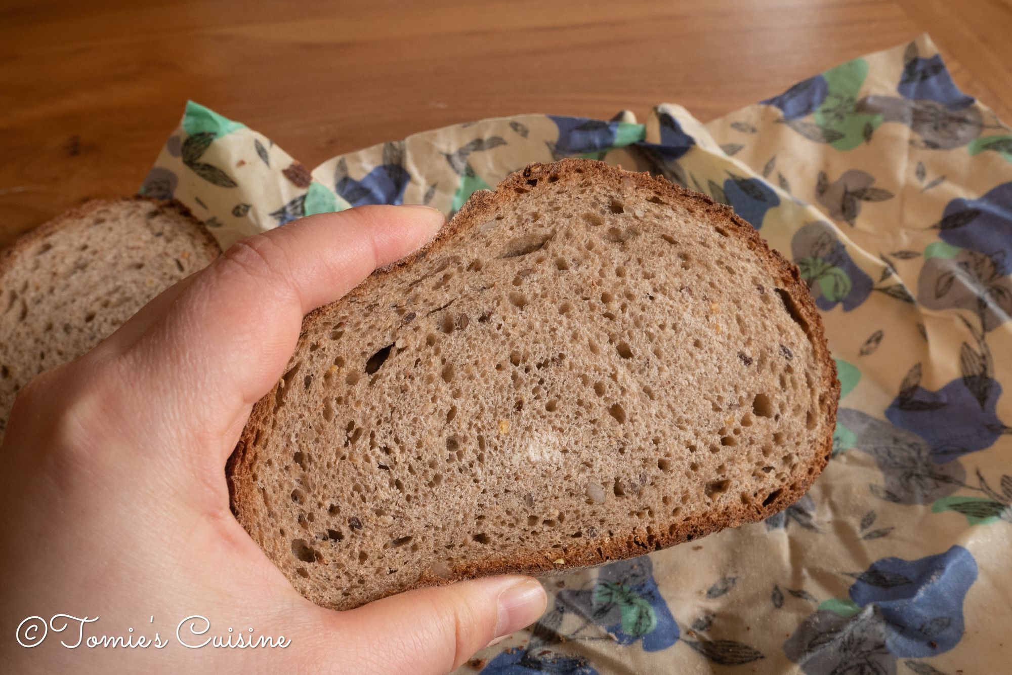 It’s soft! It’s amusing that the beeswax wrap gives a good amount of moisture to the bread. Even though the bread was tough and dry last night, I can squeeze it now.