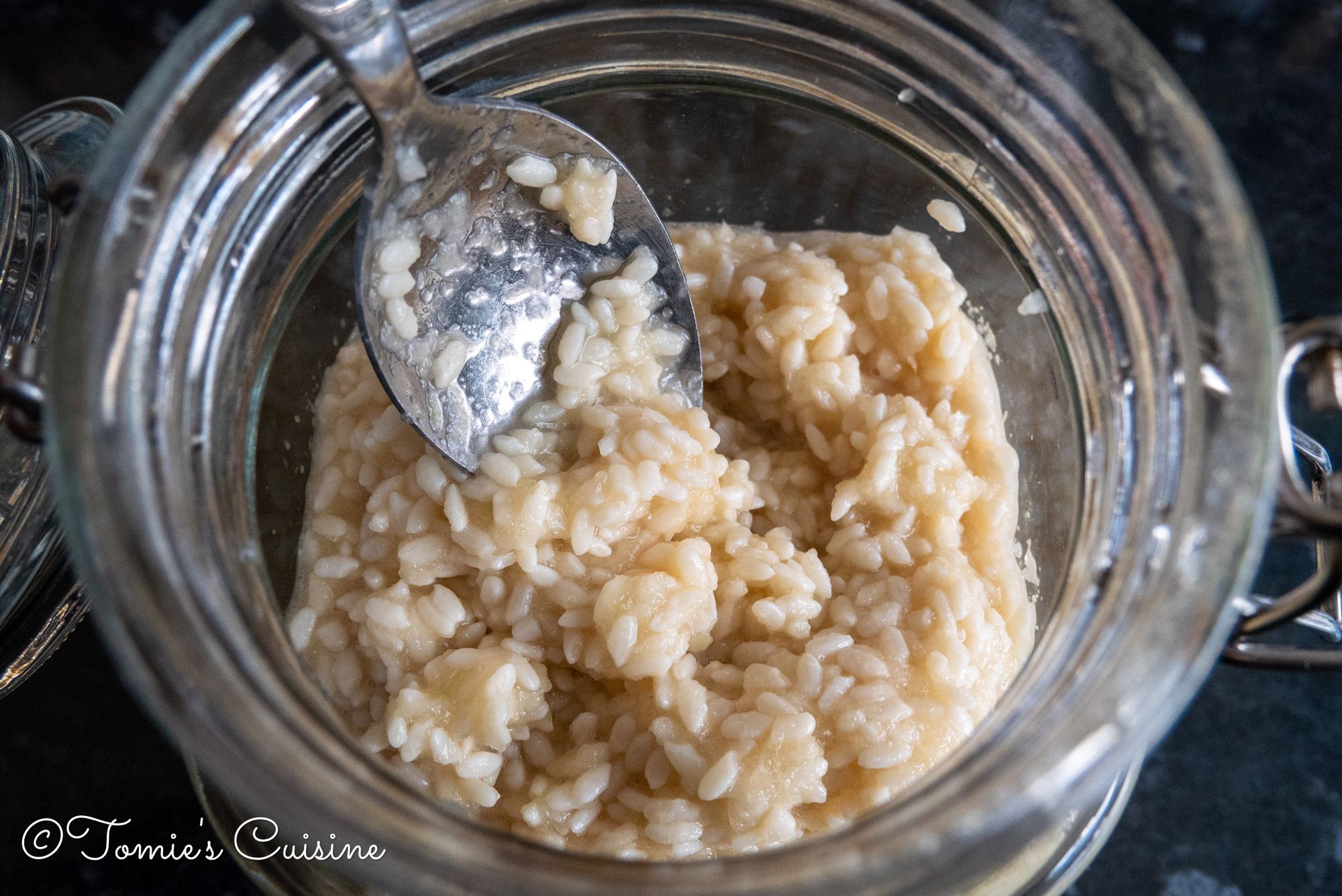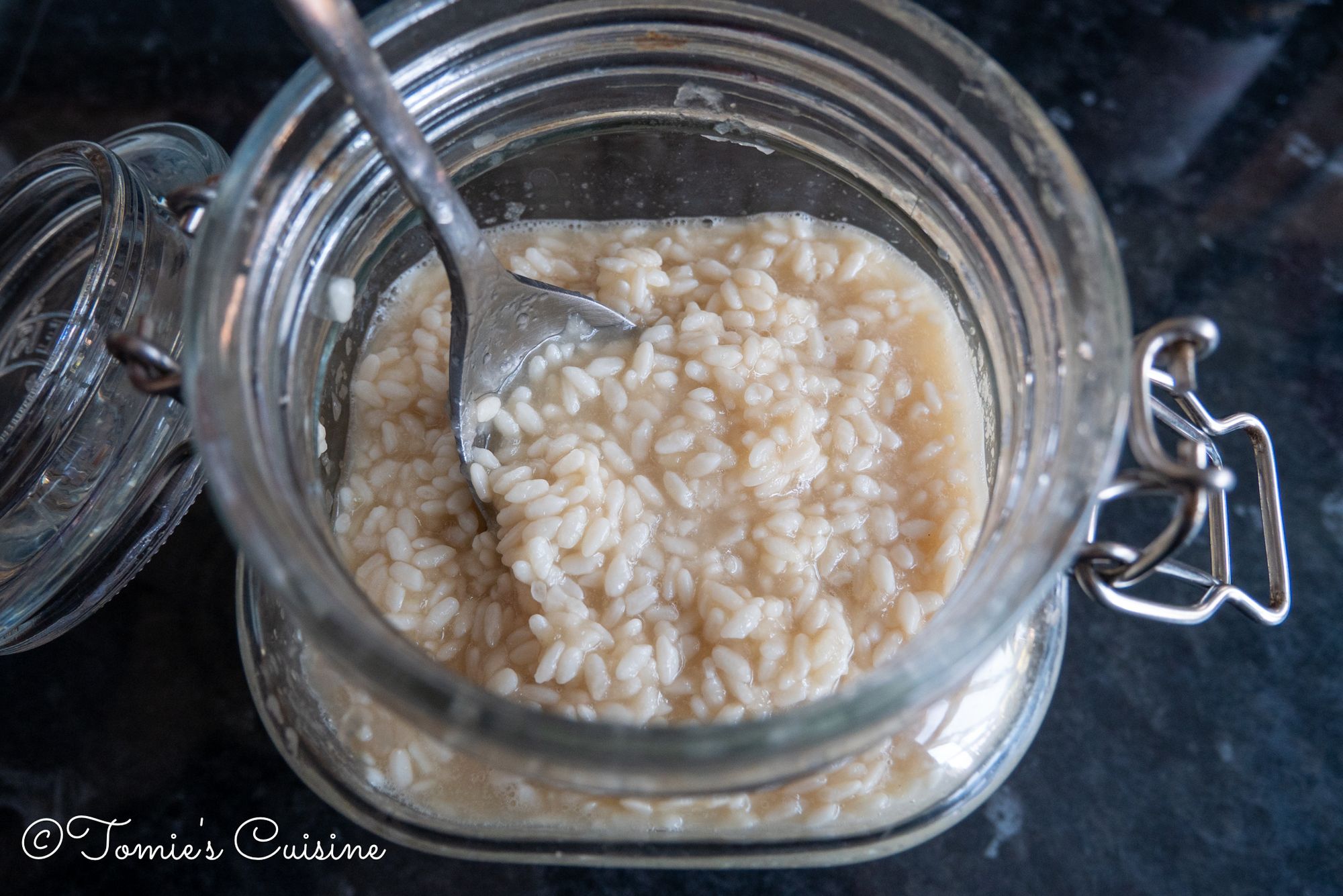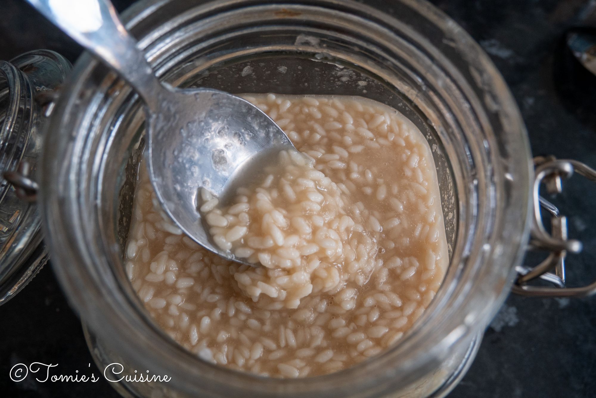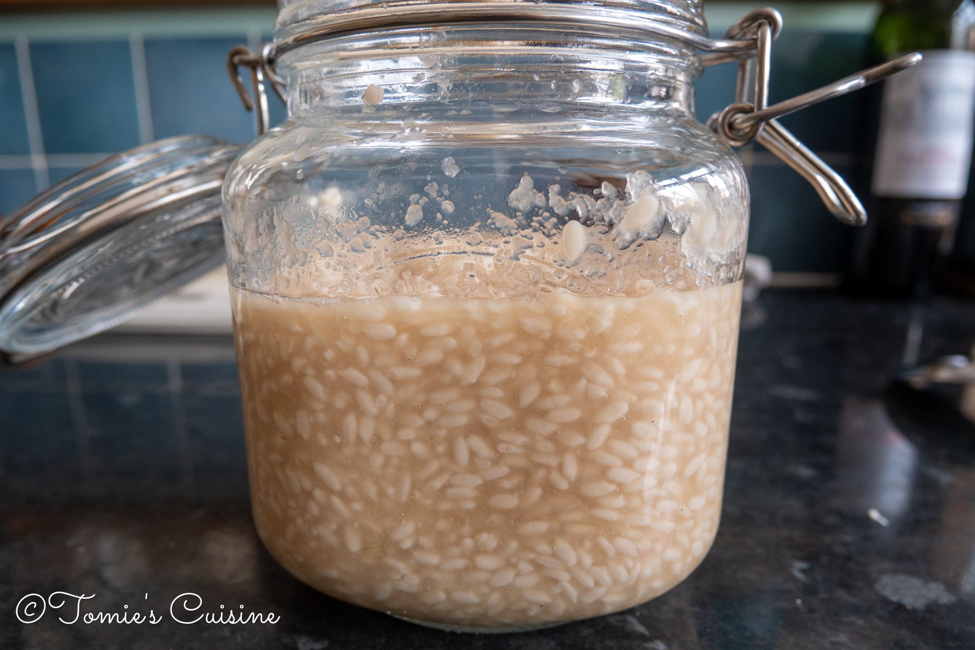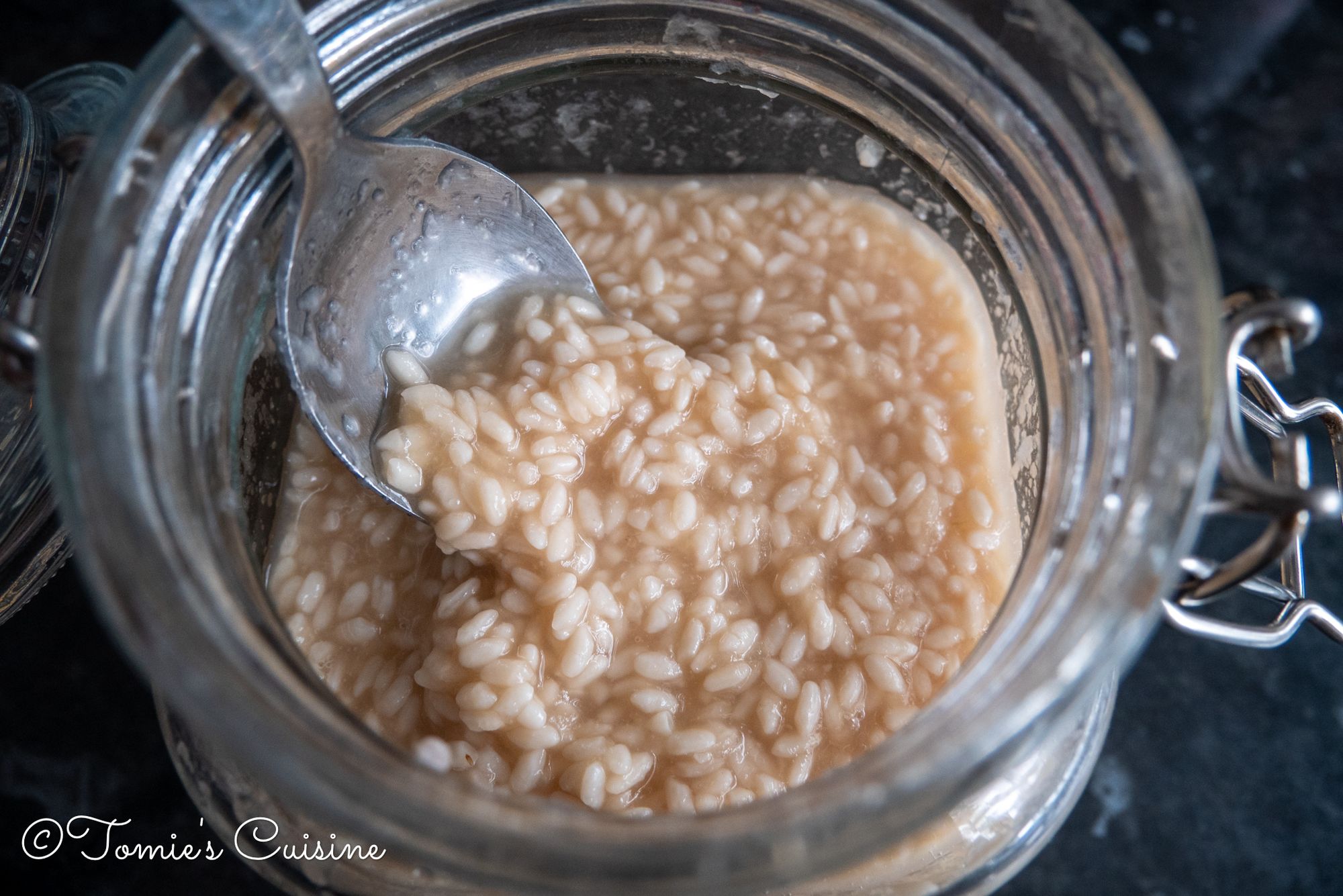 The dried rice koji sucks the moisture and expands. I mixed the onion koji with a clean spoon and added some water to bring it back to the right consistency. I mixed it well again and left it on my kitchen counter.