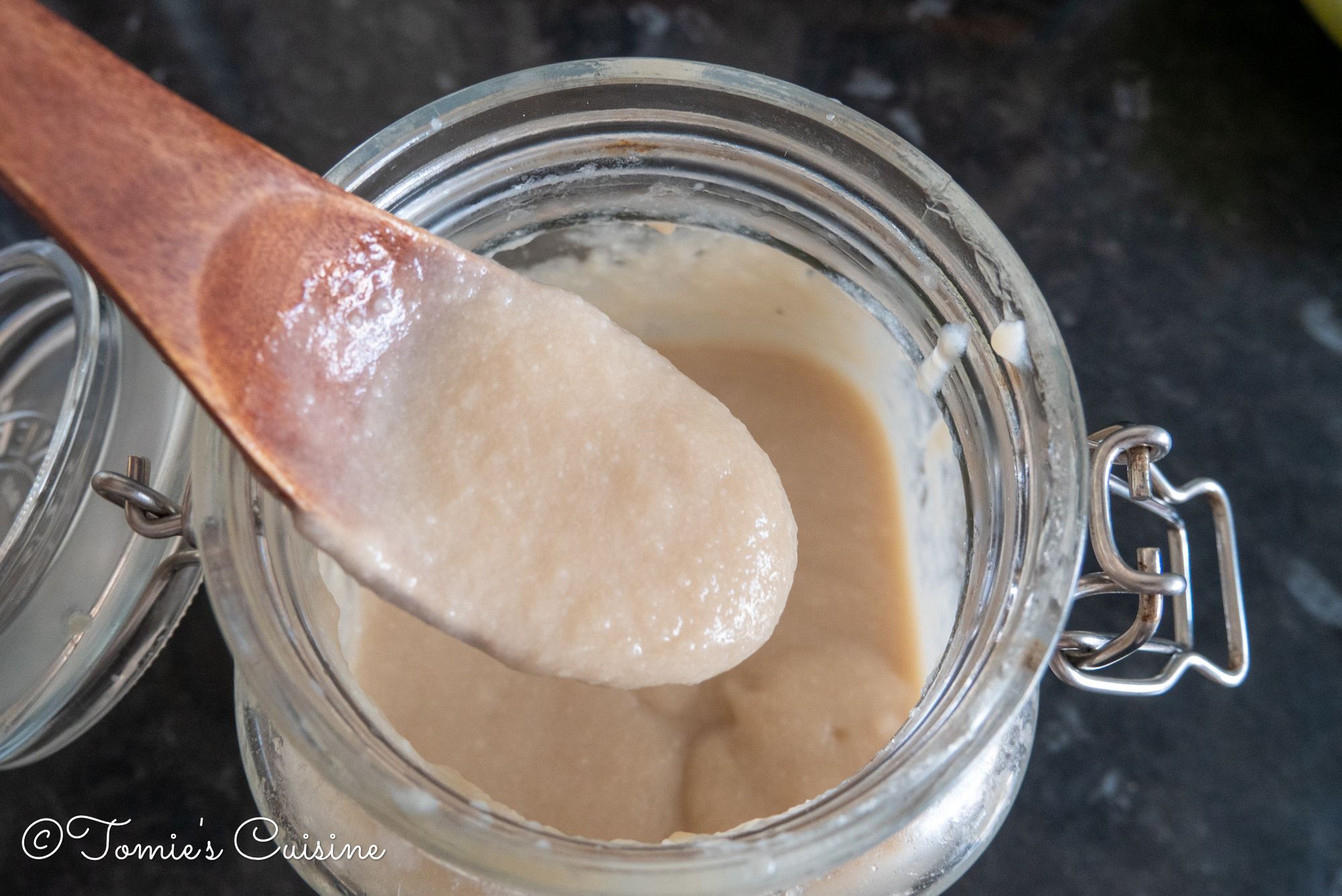 Leave the lid lightly open to remove the gas during the fermentation. Keep it in a dark place. - Mix it with a clean spoon every day to enhance the fermentation process. It takes about a week or ten days to be ready to use. Once prepared, keep it in a fridge and use it within two months.