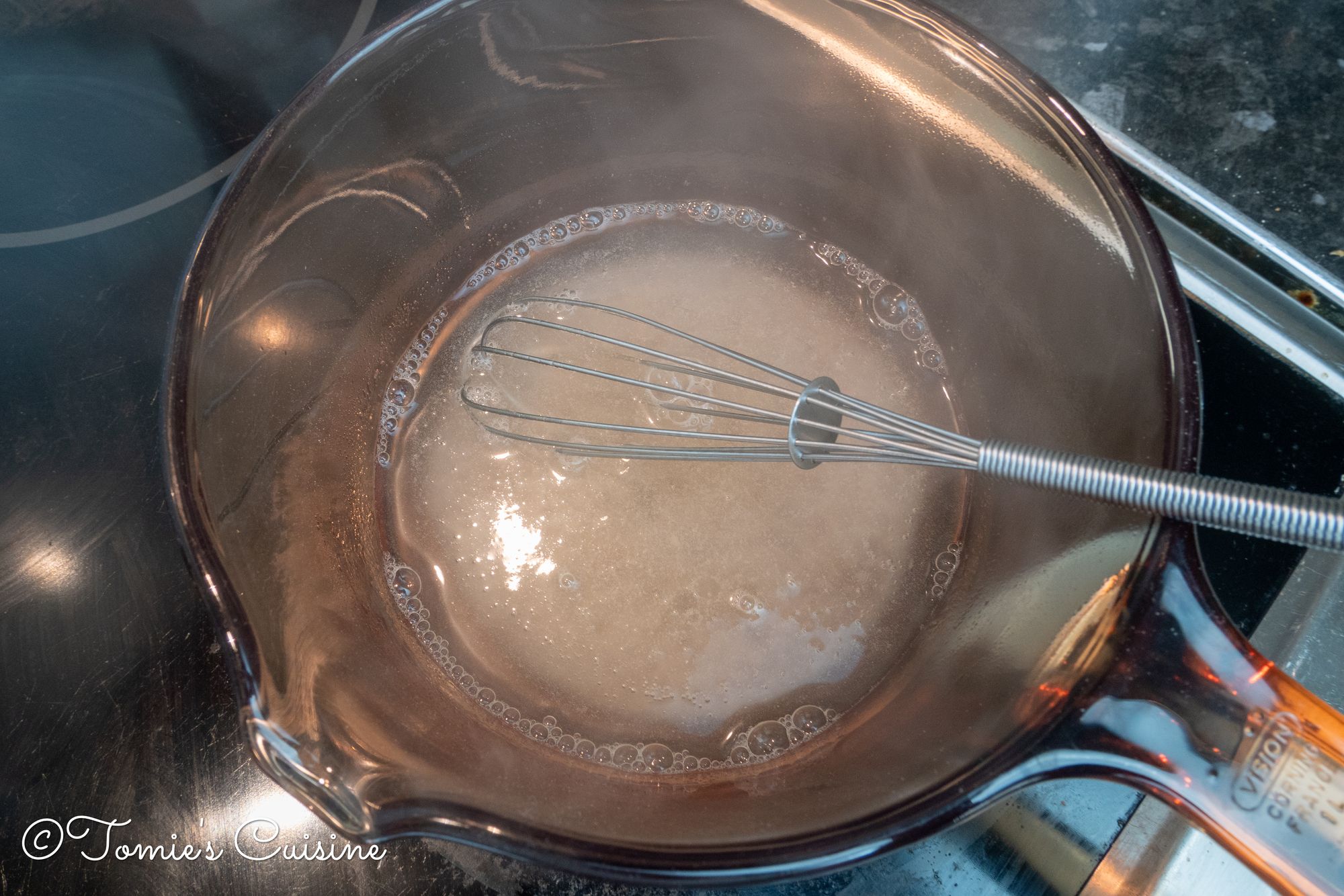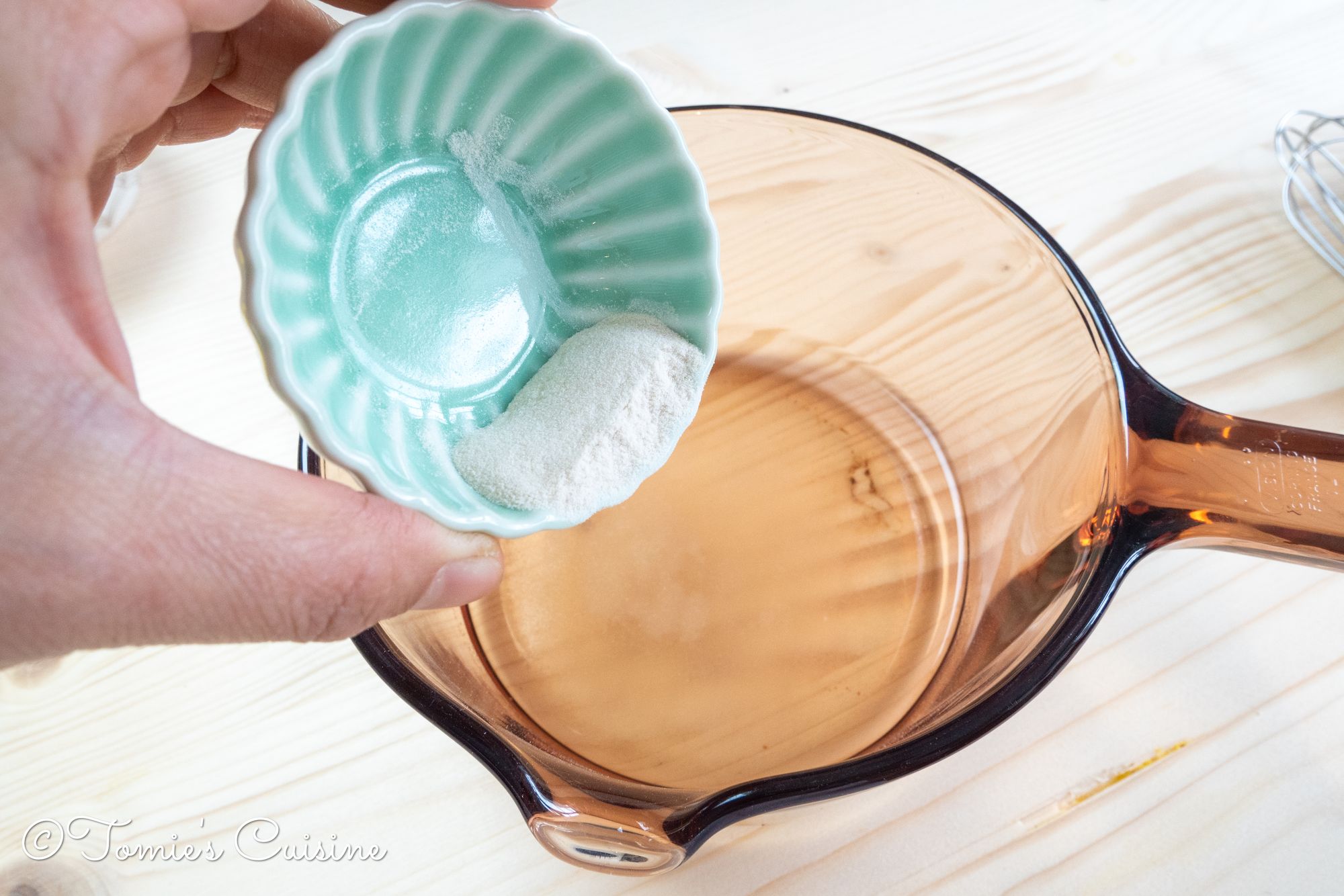 - Place the water and agar into a saucepan and bring to a boil while mixing.