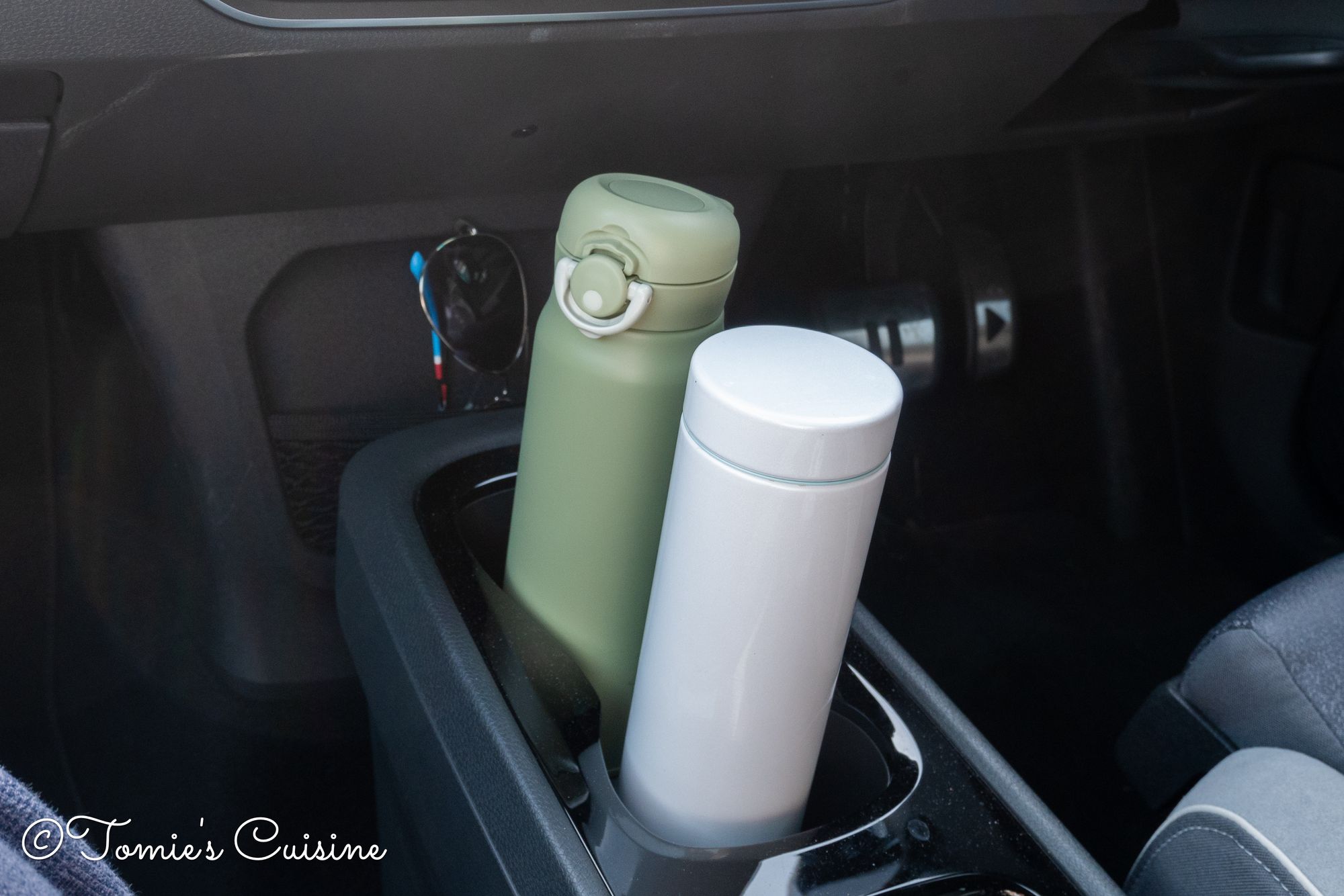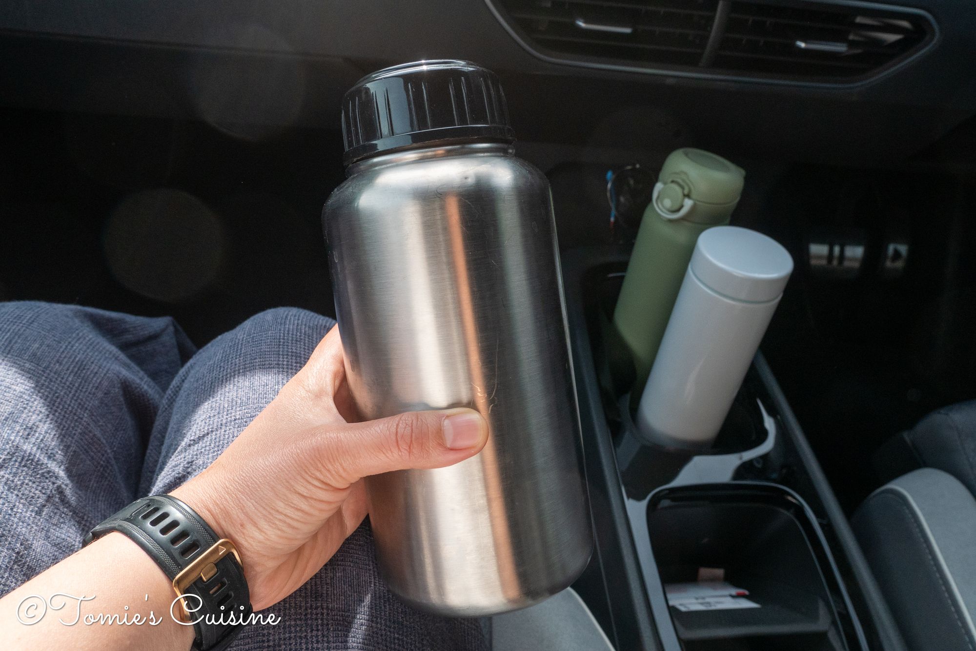 When we drove through France, I was happy to have them. Generally, whatever is sold in a service station is more expensive than in usual shops. We carried one for coffee, another for hot tea, and a stainless steel bottle with cold-brewed tea for the two of us. Therefore we didn’t need to buy any drinks!
