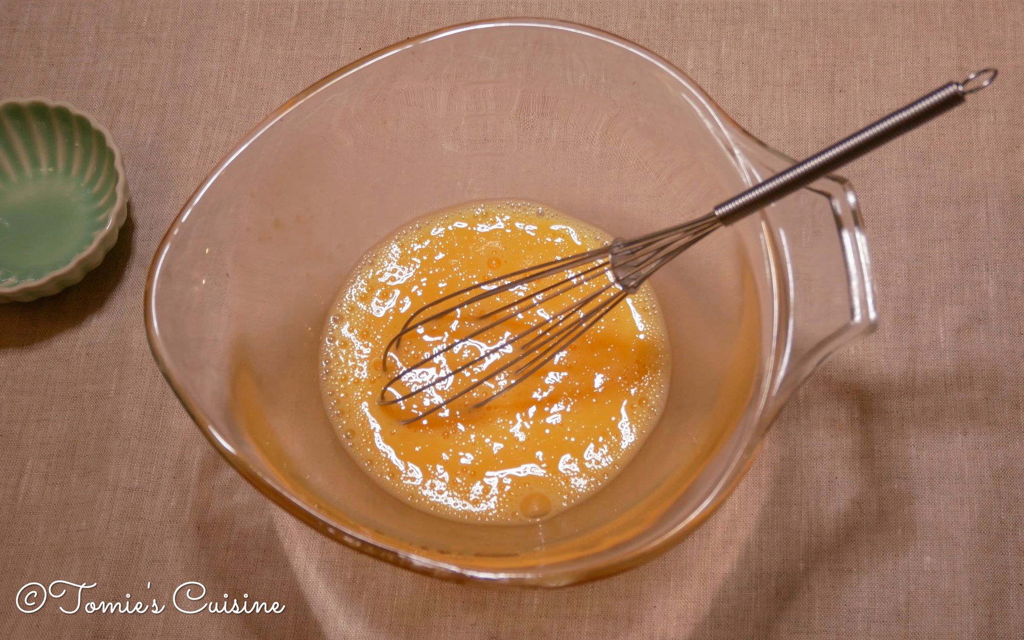 1. While waiting for the chocolate to melt, crack the eggs and beat them to a smooth texture.