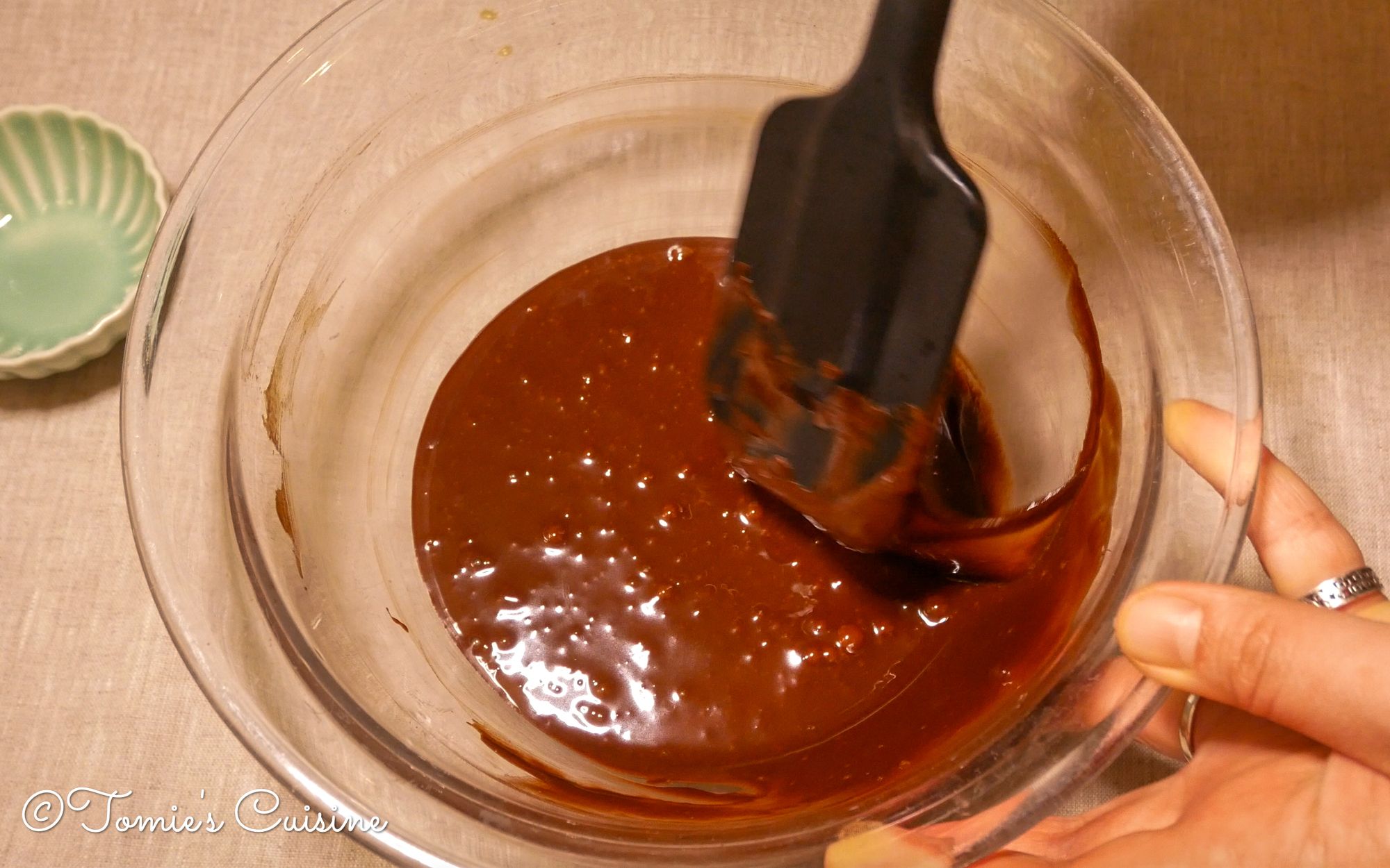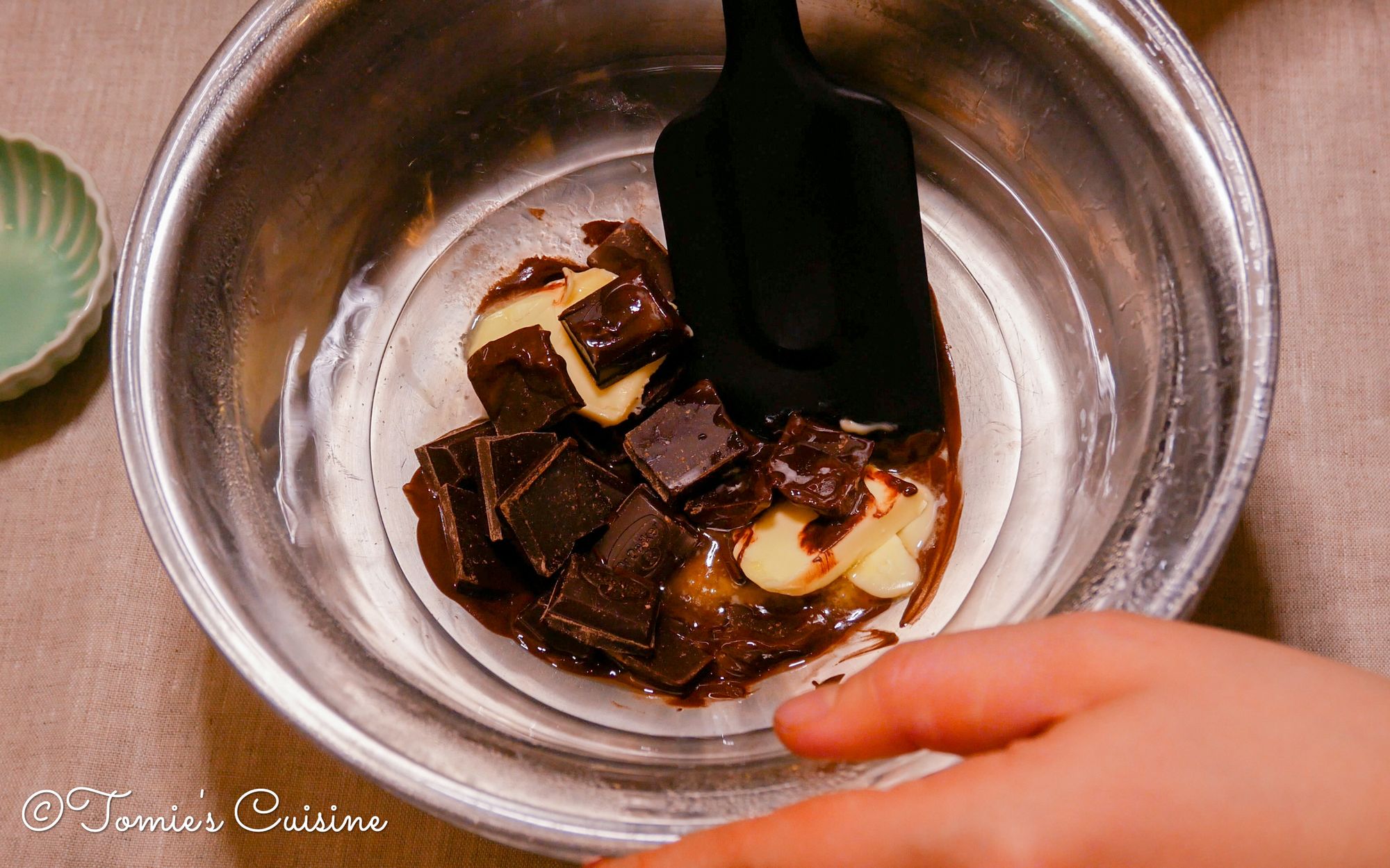 • Chopping chocolate into small pieces saves time and makes it melt evenly. I wanted to reduce the amount of wash, so I broke them into pieces myself. Not because I’m lazy! Hehe.