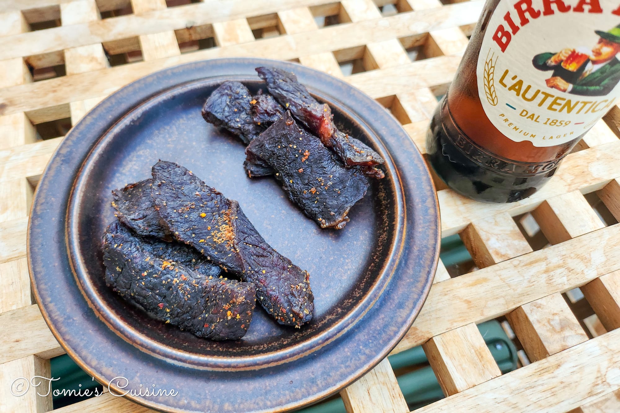 I have wanted to make homemade beef jerky since I started thinking about buying a food dehydrator – so it has been a while. Luckily, just like the fruit leather, it went well on my first try! We ate this during the hike as an apéro (aperitif) and during a short break.