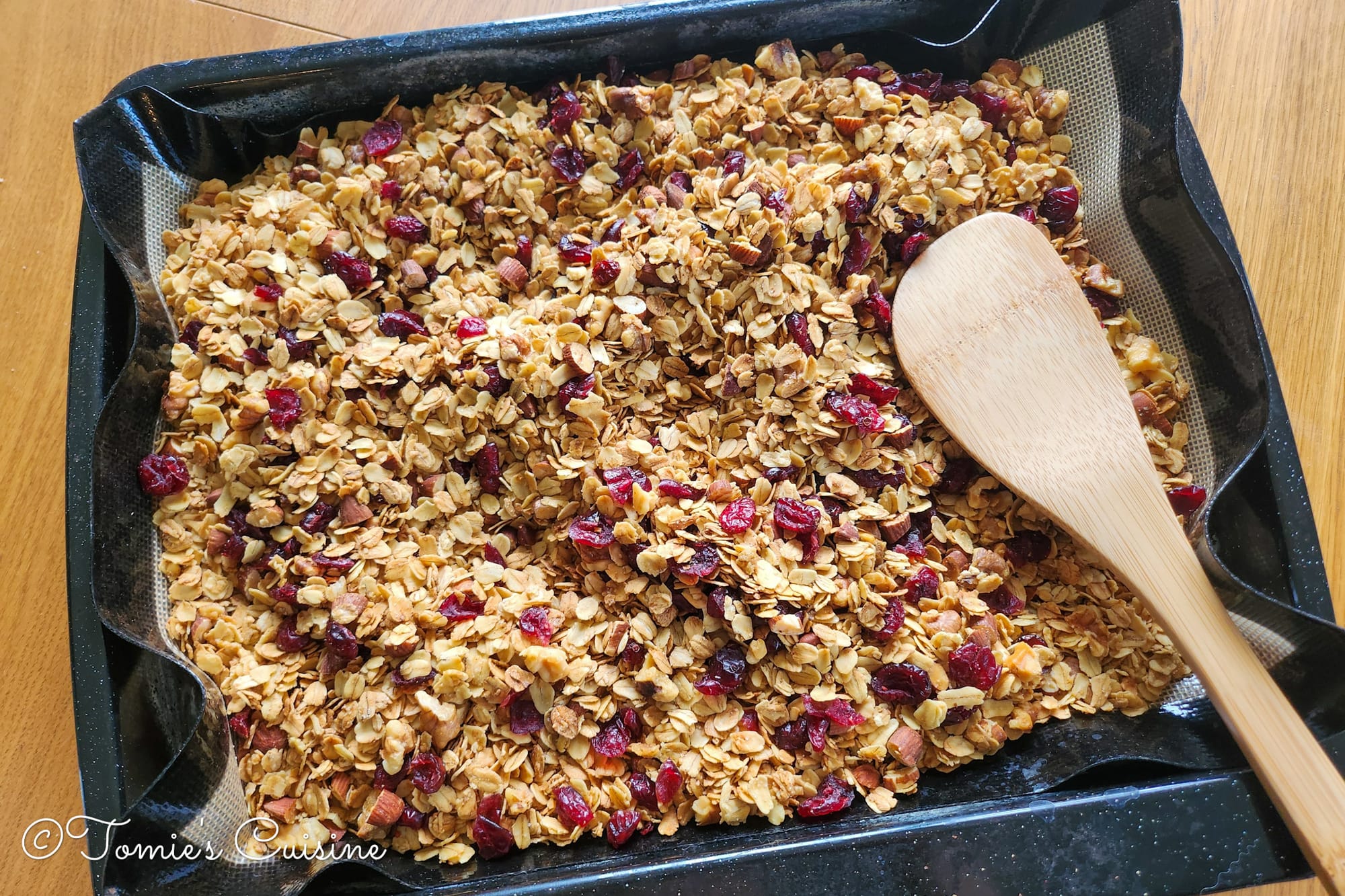 I made some granola to bring with us for hiking as breakfast. It contains oats, chia seeds, cranberries, almonds, walnuts, rapeseed oil, maple syrup, and a pinch of salt. This granola is fantastic! I tasted it, then couldn’t stop myself from eating it. I need to make another batch to share with everyone else. It's not too sweet, light, and nutty. Hmmmmm.