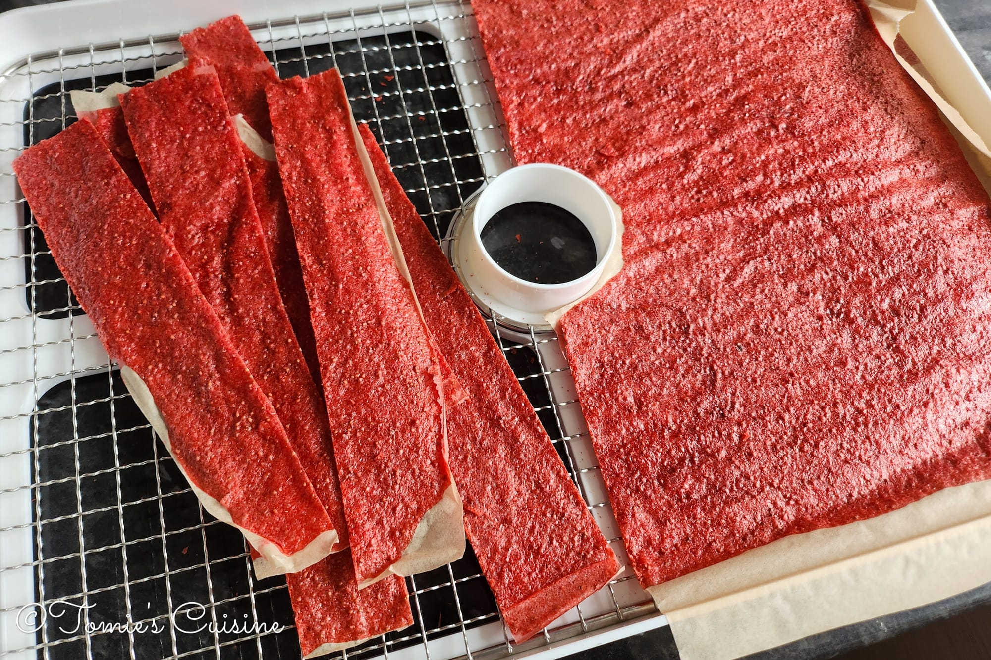 We found a kilo of strawberries in the reduced section at the local supermarket, so I made “fruit leather” for the first time, and it went surprisingly well. It’s also straightforward to make, so I don’t think I need to buy more chewy sweets! Now, whenever I see strawberries in the reduced section, I’ll get them and make fruit leather, especially when it’s in season. No food waste, and it makes my tummy happy! Win-win!