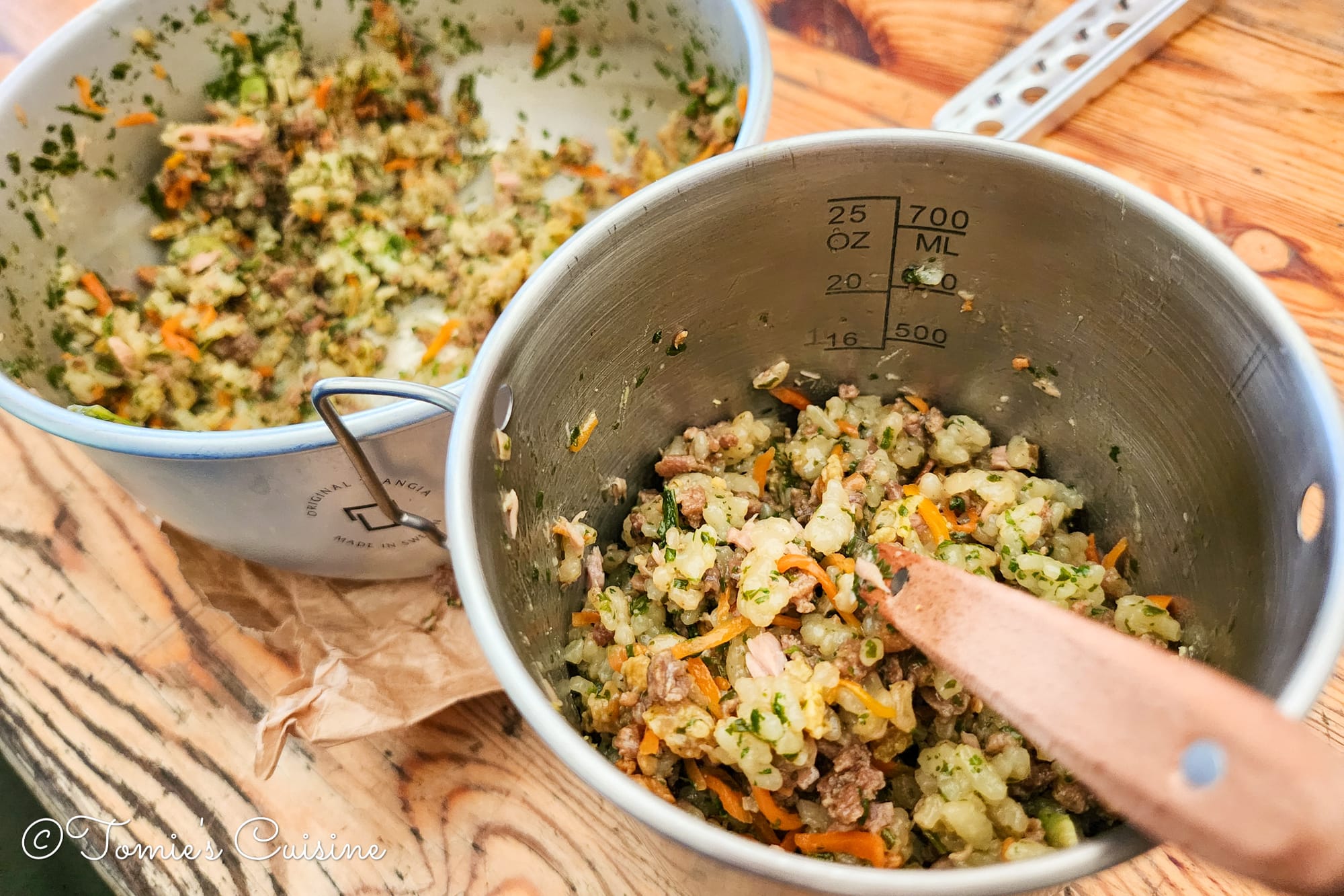 But the dehydrated food from shops is quite expensive (the cheapest one I have seen so far is over £4 for one person.), and we have to throw away the package, too. Since we have a food dehydrator, I decided to prepare some food for us to try!