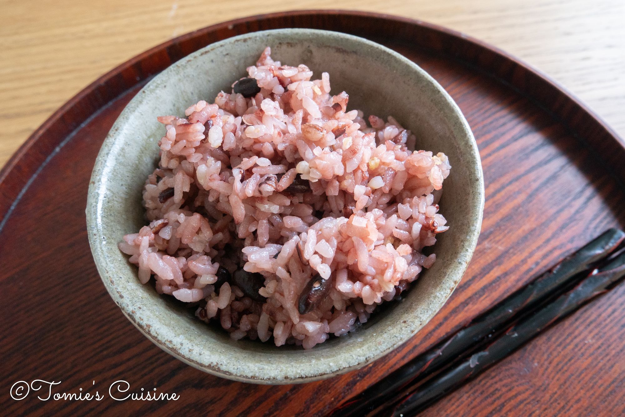 We eat Japanese rice with a mix of grains most of the time to get some fibre and minerals by eating them. Less than once a week, we have some spaghetti too. And potatoes maybe every other week or once a month.