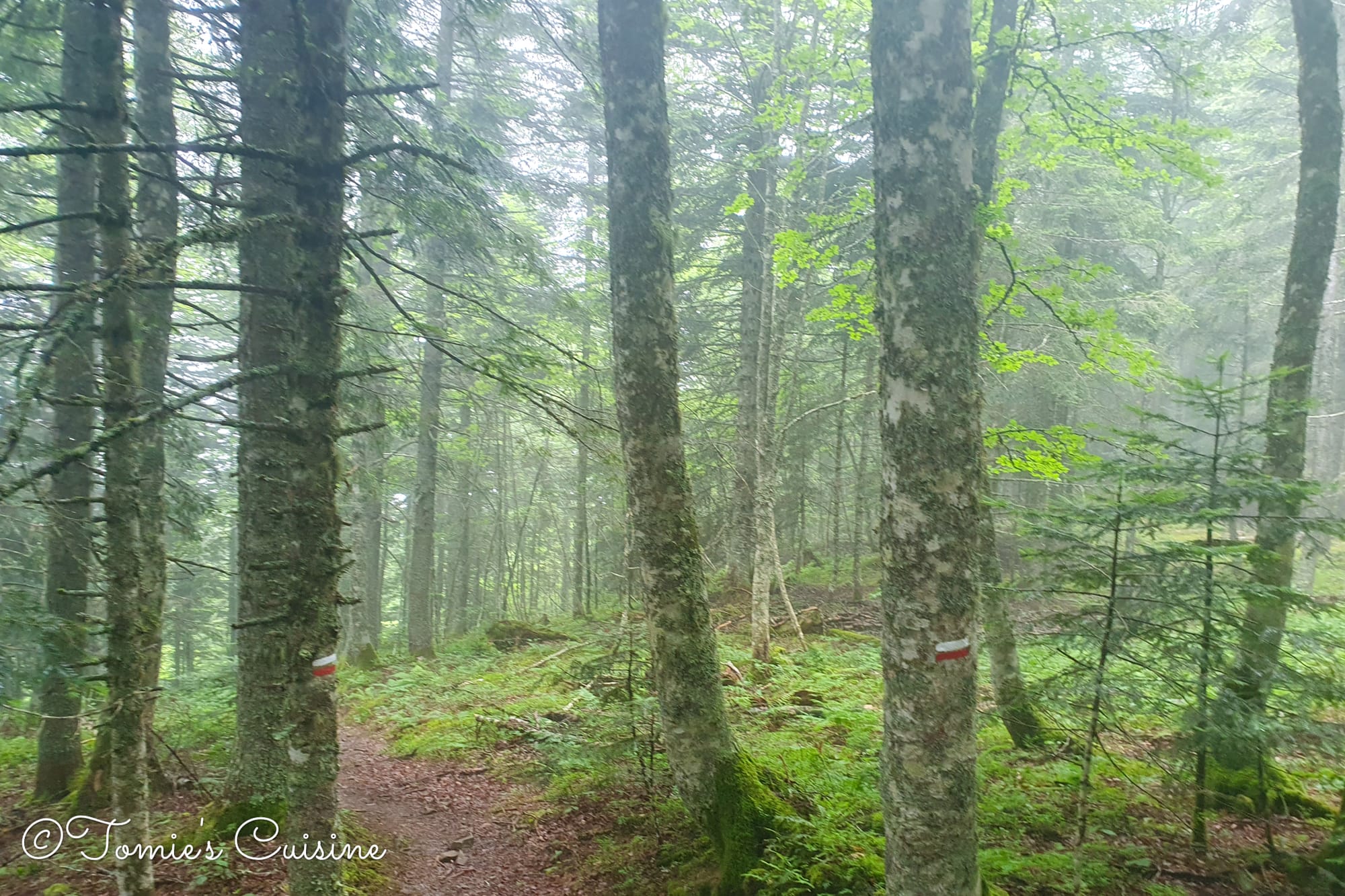 After the lakes, we walked down another 2.2km and found a place to pitch our tents. It was a quiet spot just off the path, and then, after we finished putting our tents together, we saw over fifteen cows coming out of the forest. It seems like this exact field was one of their grazing places. We sat there quietly, and then, after they enjoyed their dinner, they headed to their next stop.