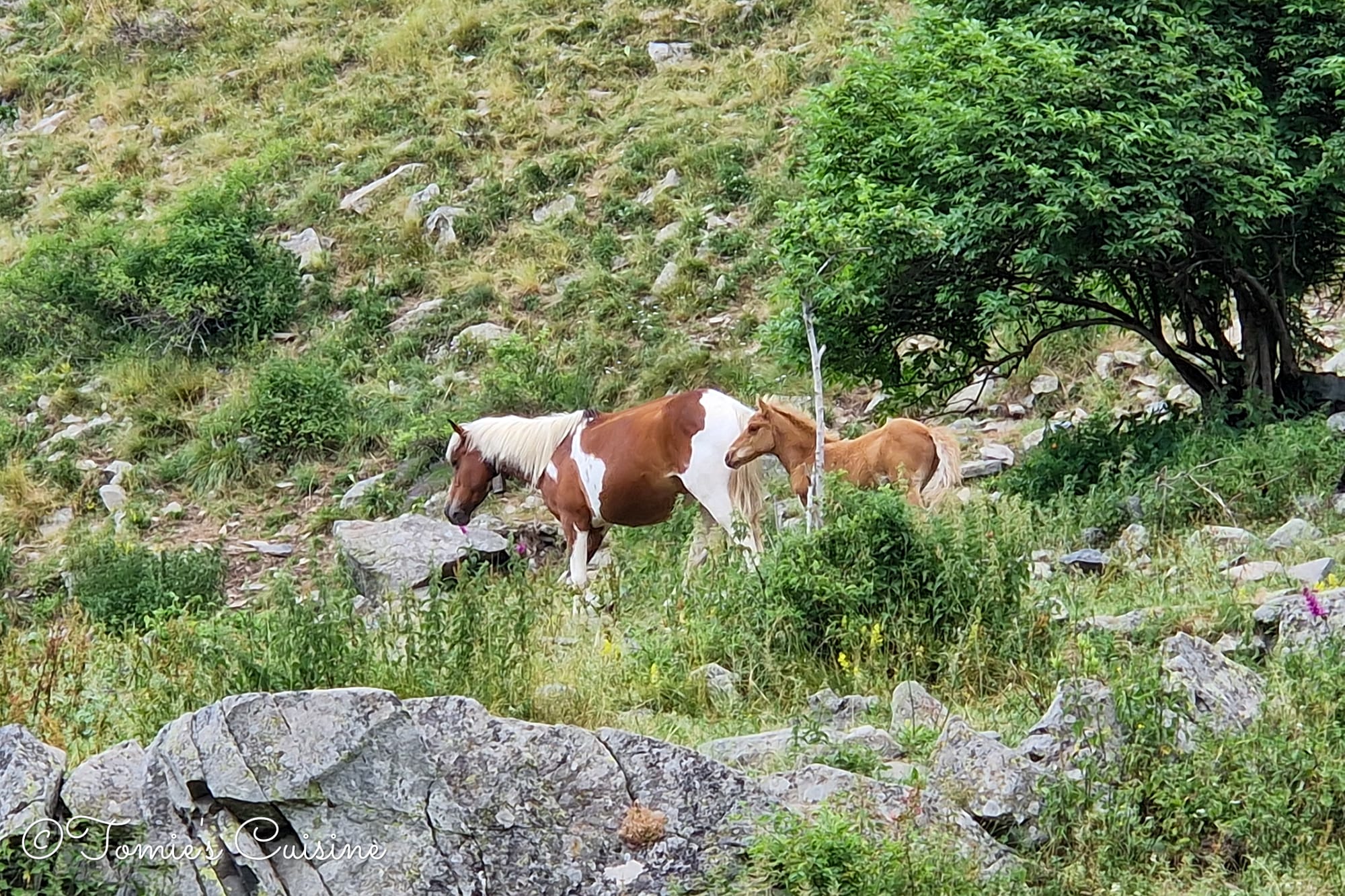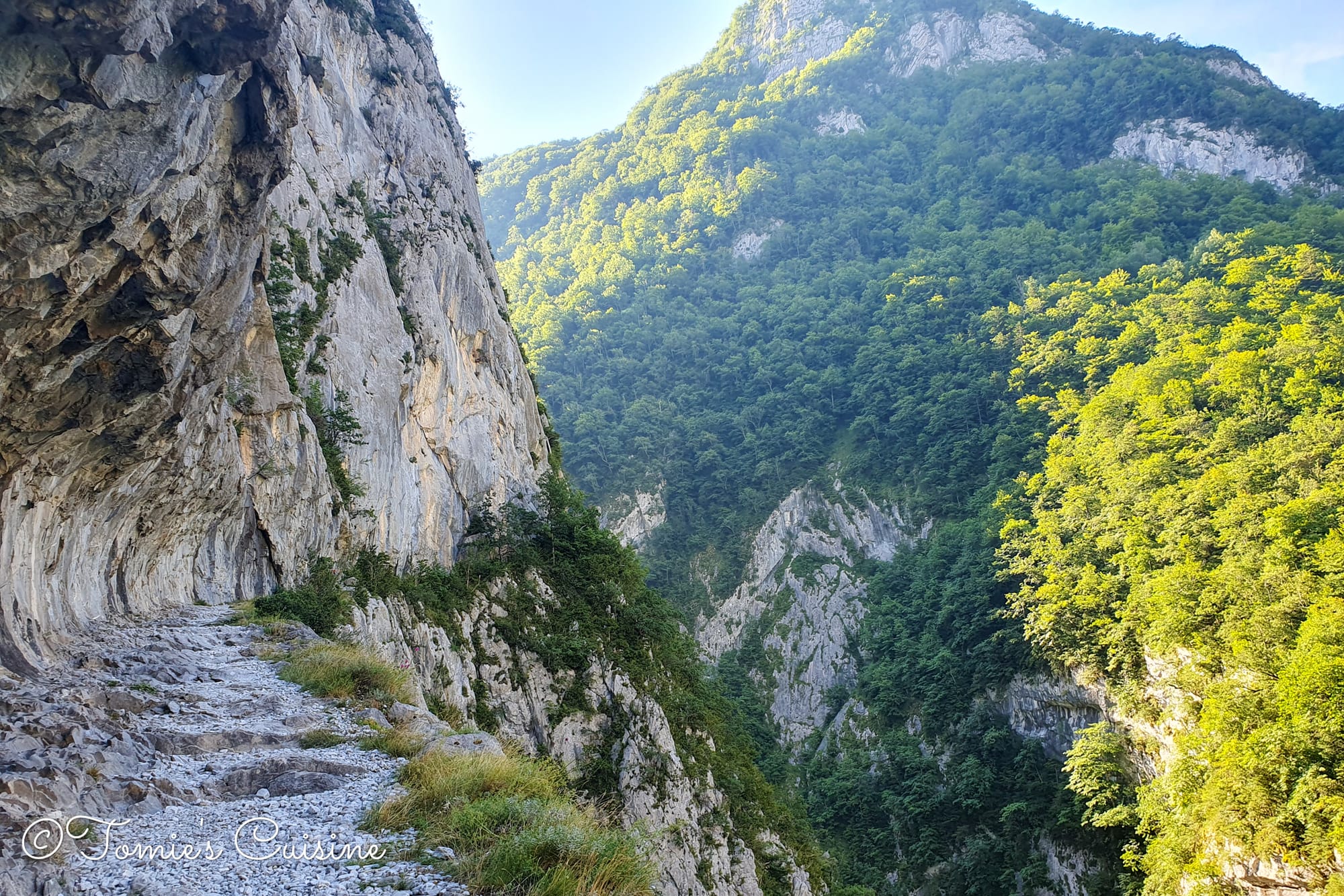 We left Borce early in the morning and hiked 12 km along the mountain, climbing slowly and steadily. Some parts were narrow, with no barrier along the cliff, which scared me. (Yes, I’m a scaredy cat.) We could see a family that had hired donkeys to carry their bags.