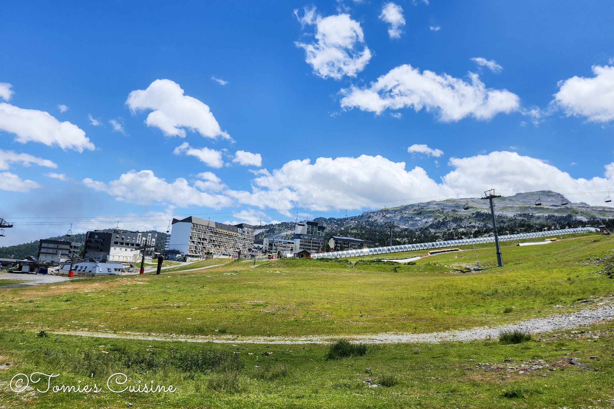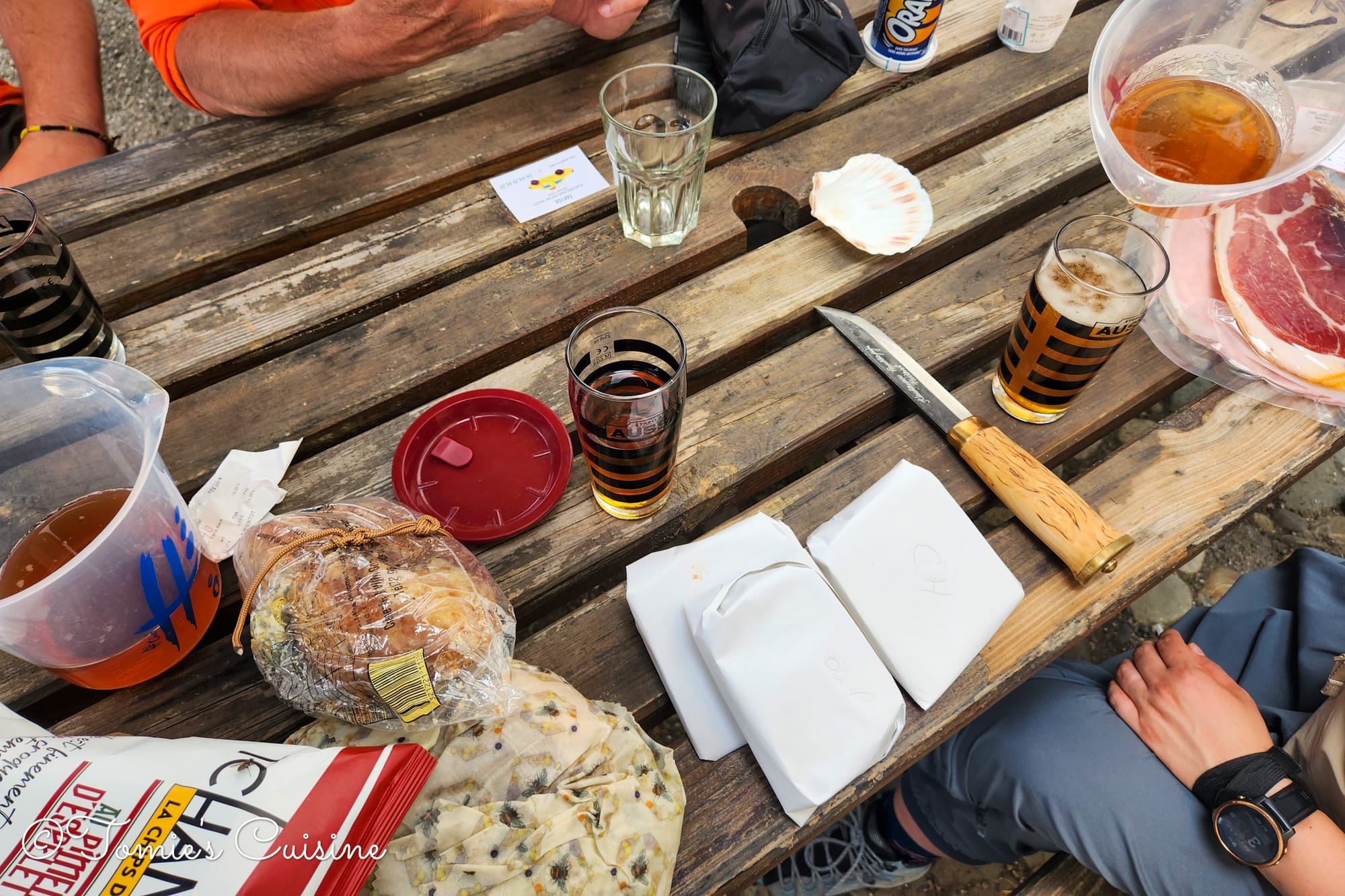 On day three, we reached Lescun. We had to climb many steep hills in the heat, so we were all tired and thirsty. There, we stopped at a cafe/small shop for some cold beer and enjoyed the local produce they were selling. So, we indulged in some local crisps, cheese, and ham to make sandwiches. Then, we had a few local(!) ice creams made from cow and sheep milk to compare the taste. We stayed at a campsite near the village for two nights to help the parents recover.
