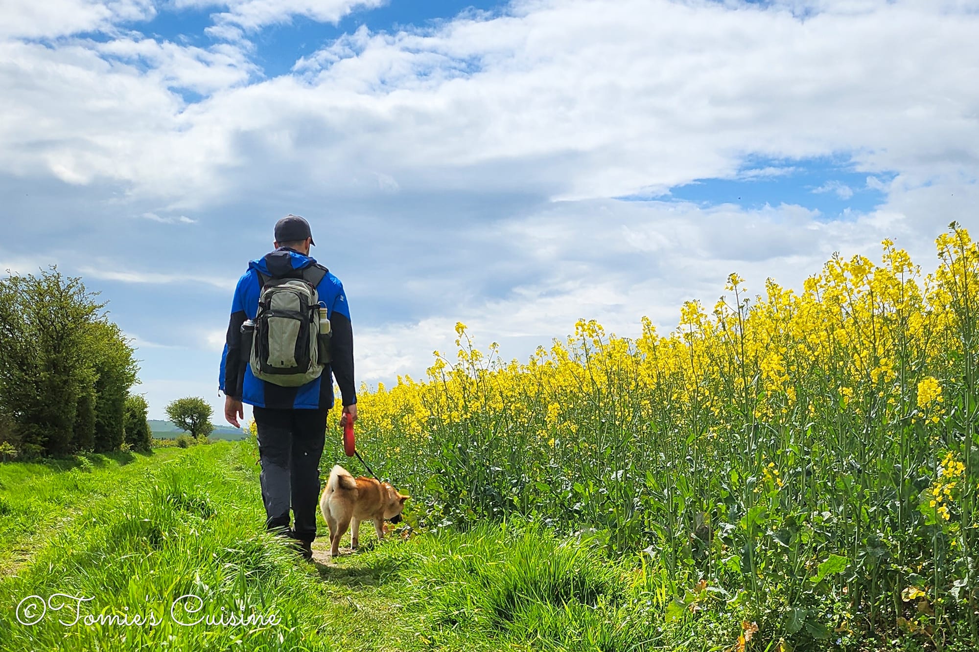 - Walking while out for a walk with our dog