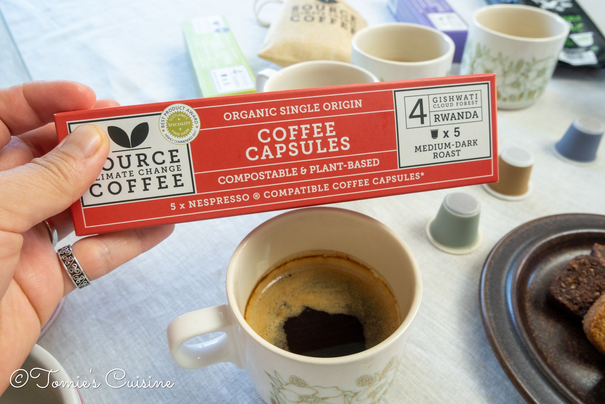 Today I am comparing the taste of those coffee pods. All the coffees are brewed by pressing one time on the “lungo” and one time the “espresso” buttons with a Nespresso machine.