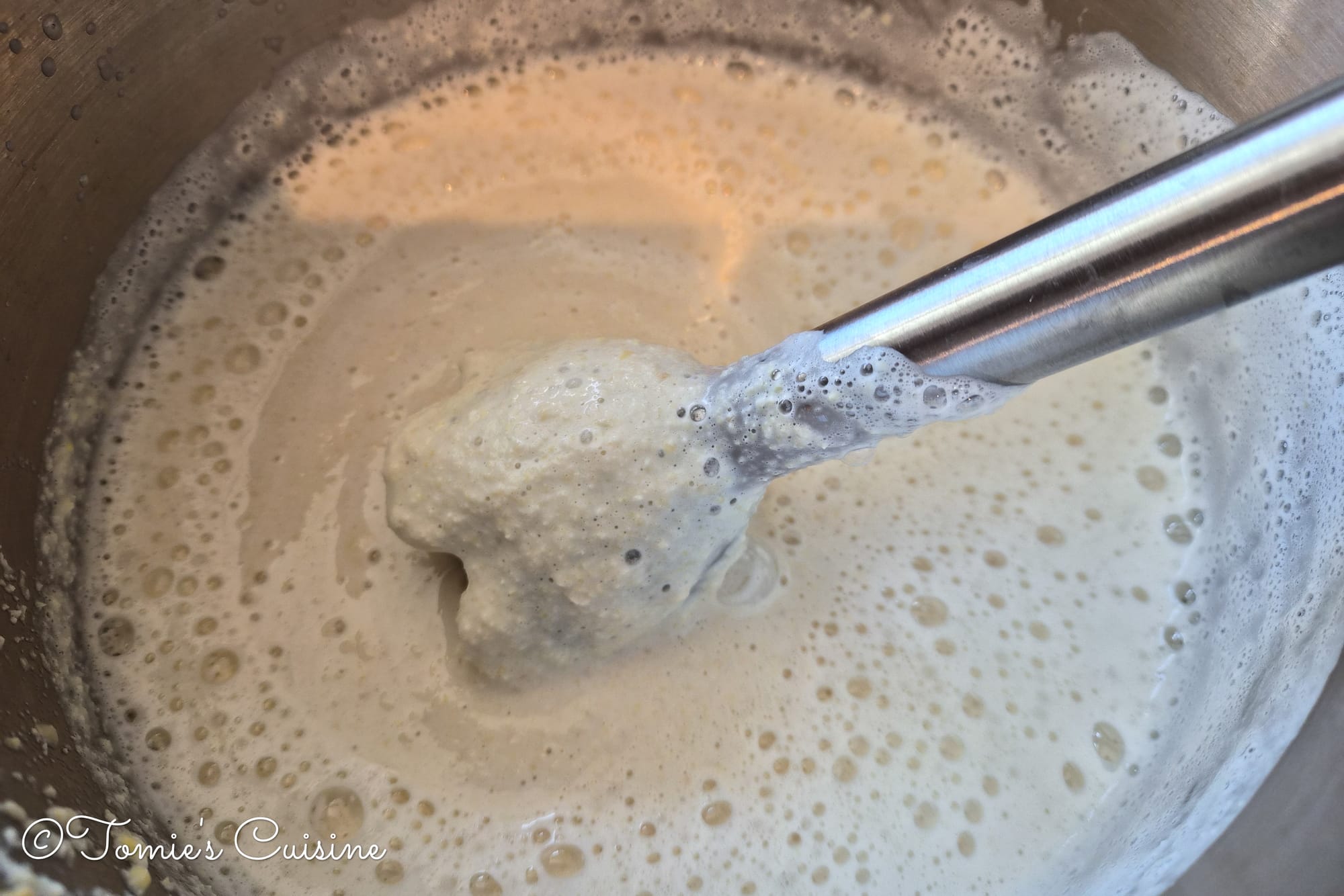- Blend the soya beans and water using a hand blender until smooth. Then, add another 500 ml of water.
