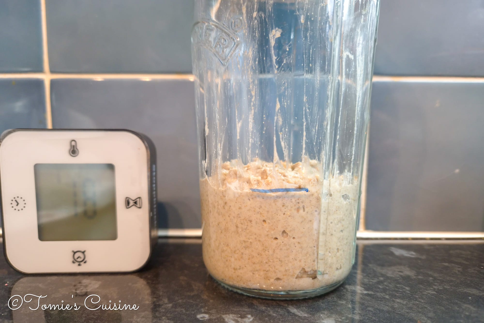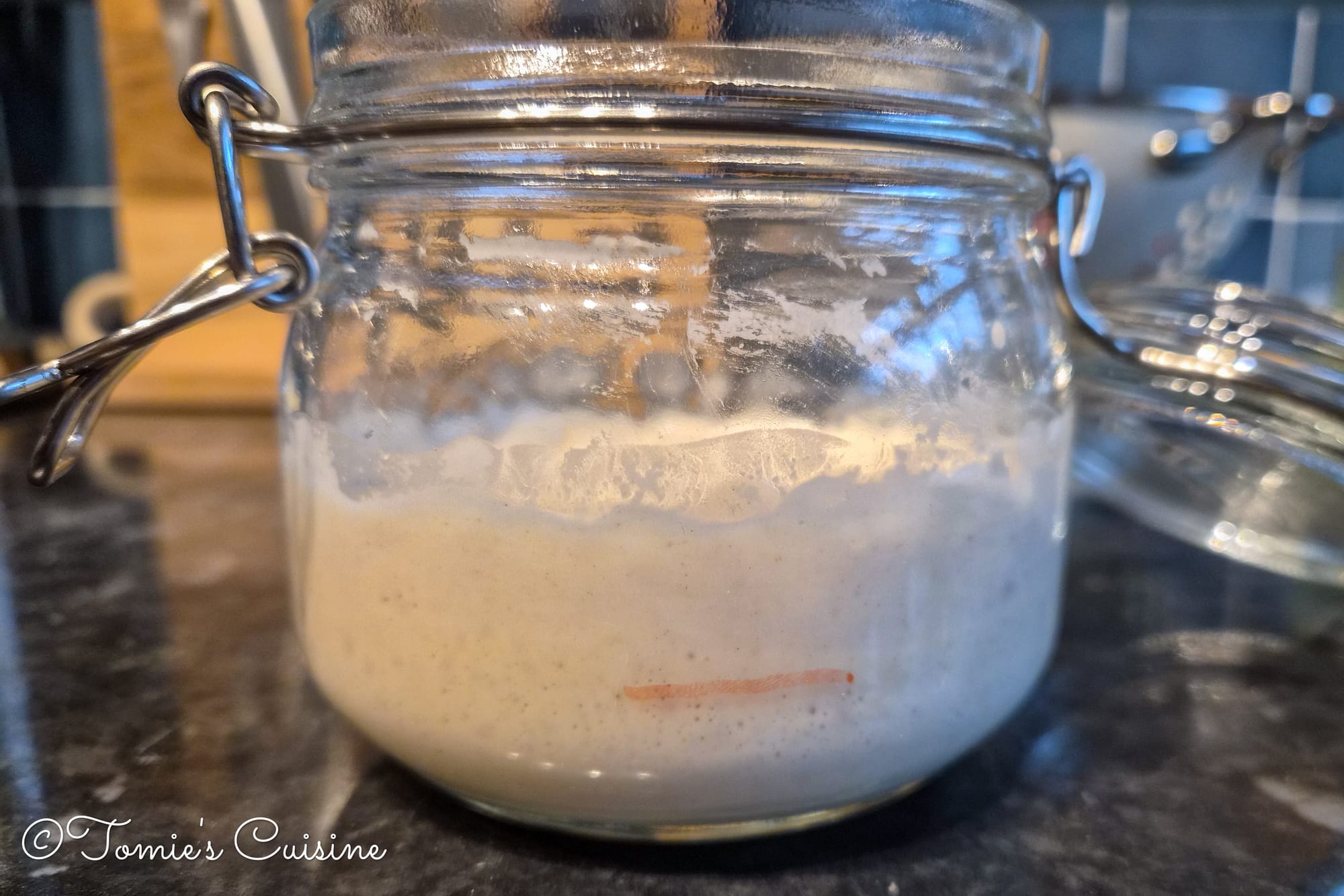 I once ran out of rye flour mid-process and, remembering that I had seen some people make starters with bread flour, decided to try Tesco’s Organic Strong Flour. At 11.5g of protein per 100g, I thought it would be fine, but in my case, it wasn’t. The starter would not rise. Some people say it’s fine that it doesn't rise unless it’s bubbly, but it’s difficult for beginners like us to tell if it’s ready. So, I then tried Tesco’s ‘Very Strong Bread Flour’, which has a higher protein content, and that worked better. But in the end, I always come back to Doves Farm Rye Wholemeal Flour. Oh, and another bonus of rye flour is that it provides extra nutrients.