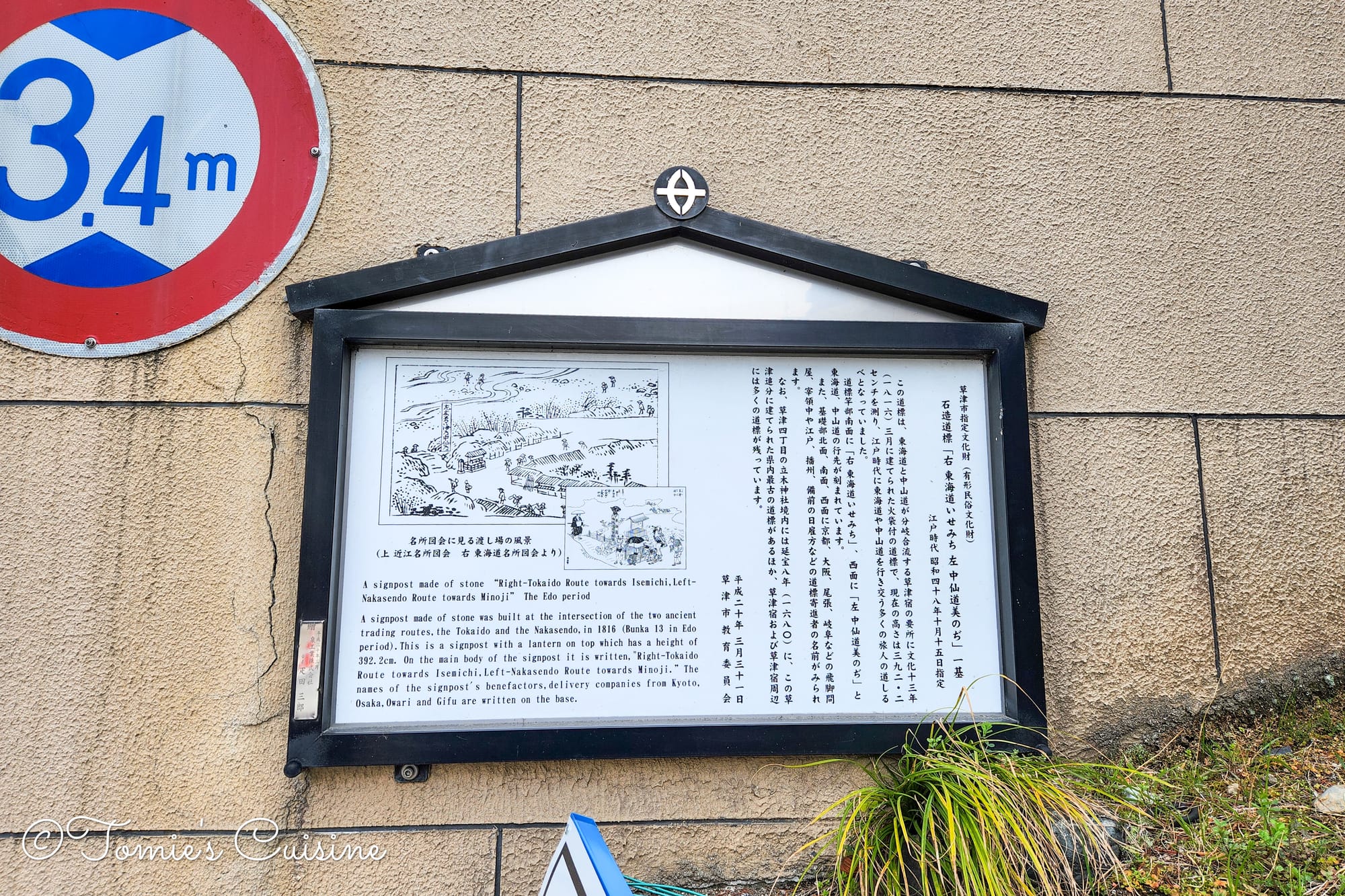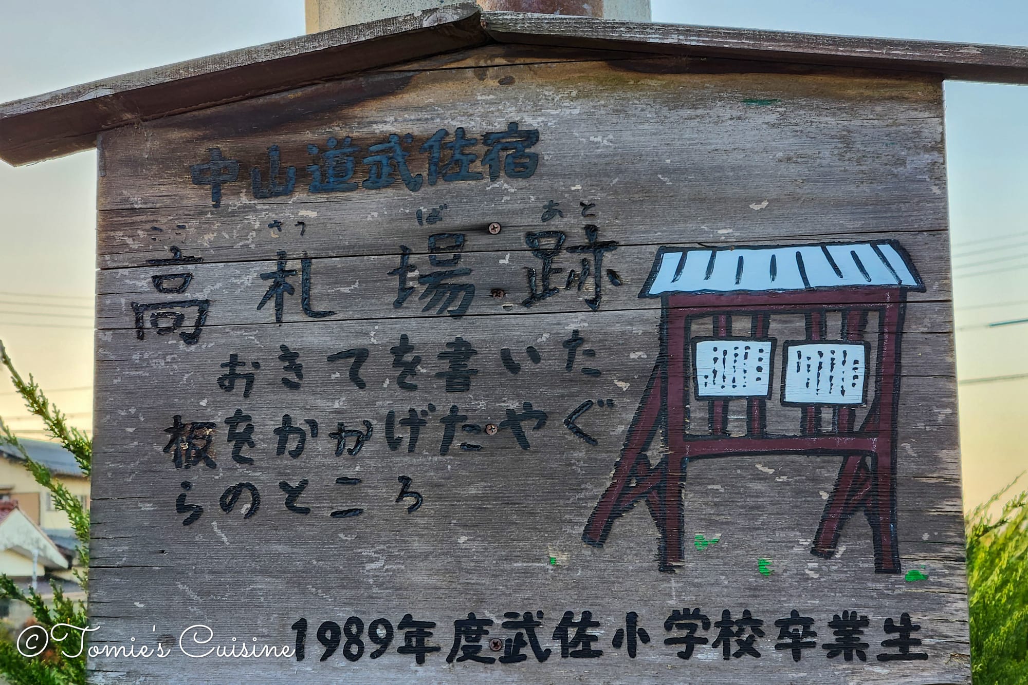 The information board located at the junction of the Nakasendo and Tokaido roads describes how the two roads split.