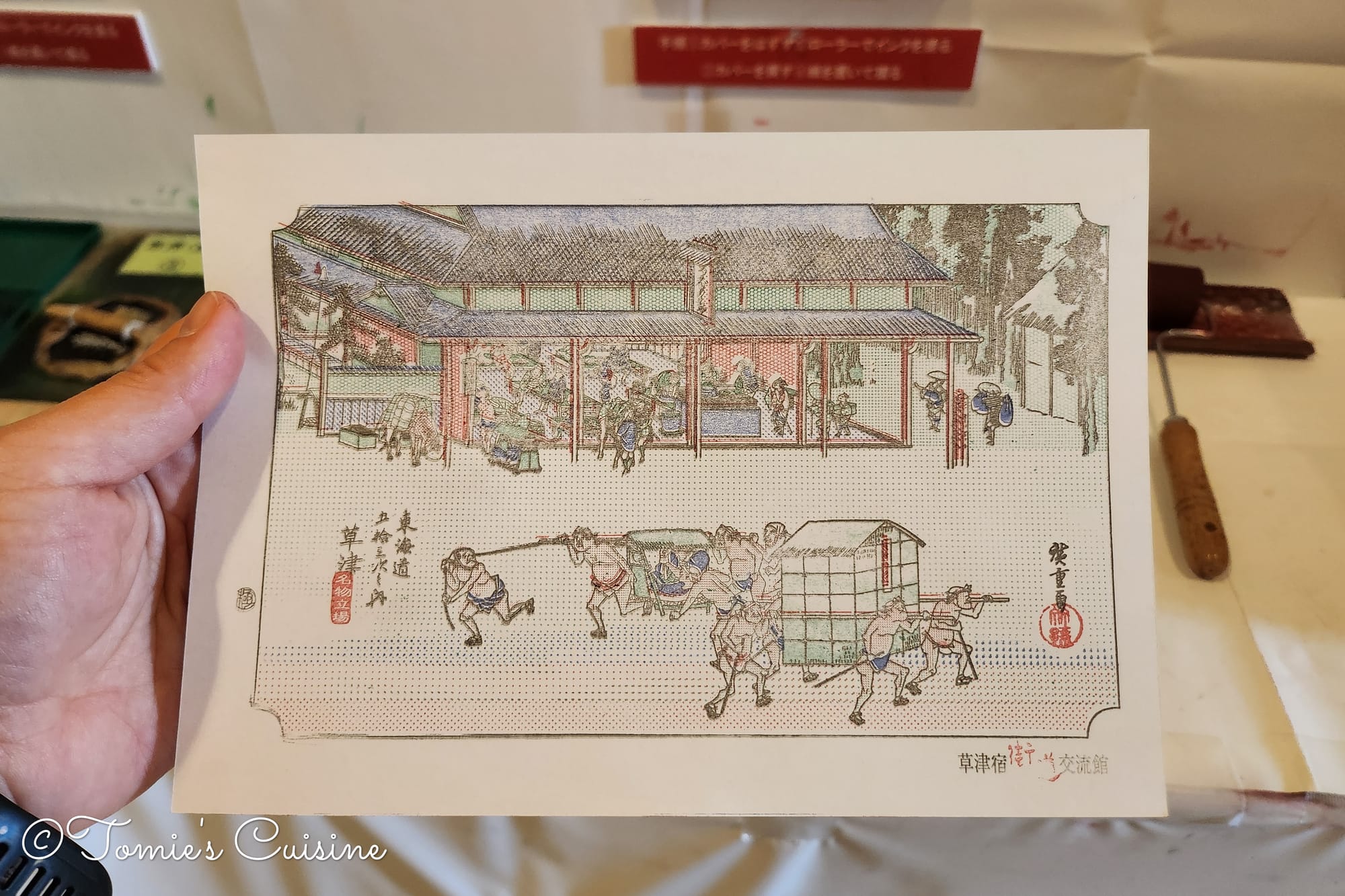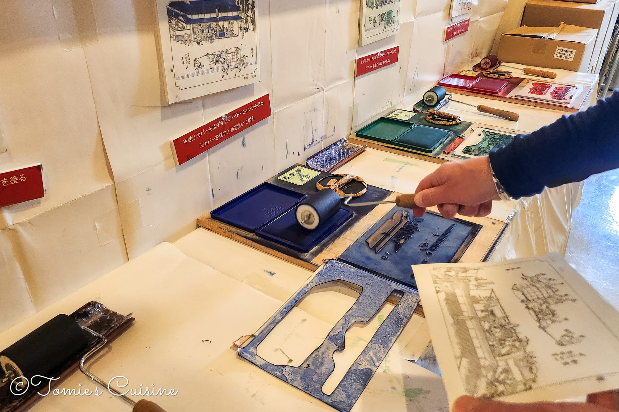 Downstairs, a staff member invited us to try a simplified Ukiyo-e print. It was a fun and hands-on way to understand how these prints were made during the Edo period. We each made a print and compared the results. We could have spent more time there, but our schedule was tight, and we needed to get back on the trail.