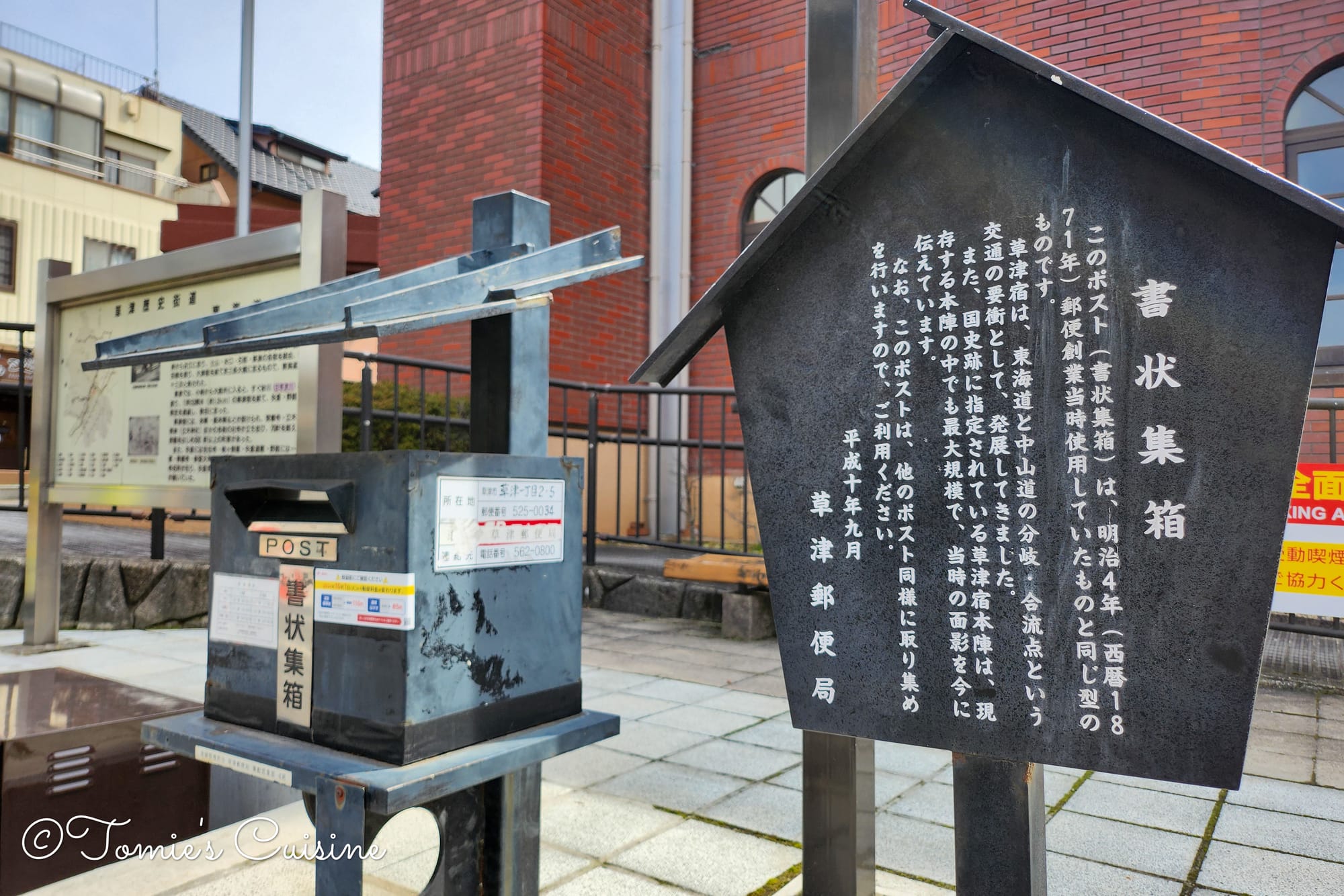In the post town of Kusatsu, there was a post box designed like the one from 1871.