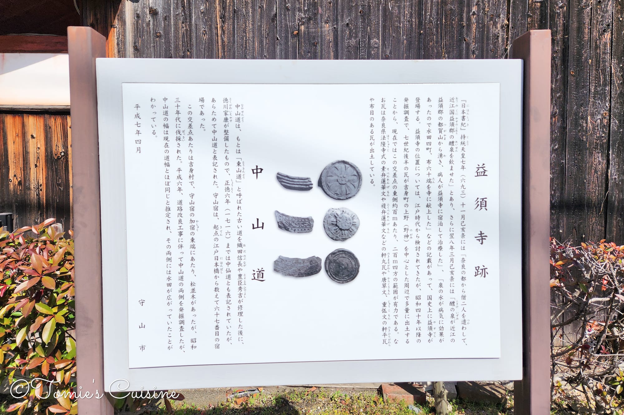 An explanation board for Yasu temple ruins (益須寺跡) (left), located right next to the road. (right)