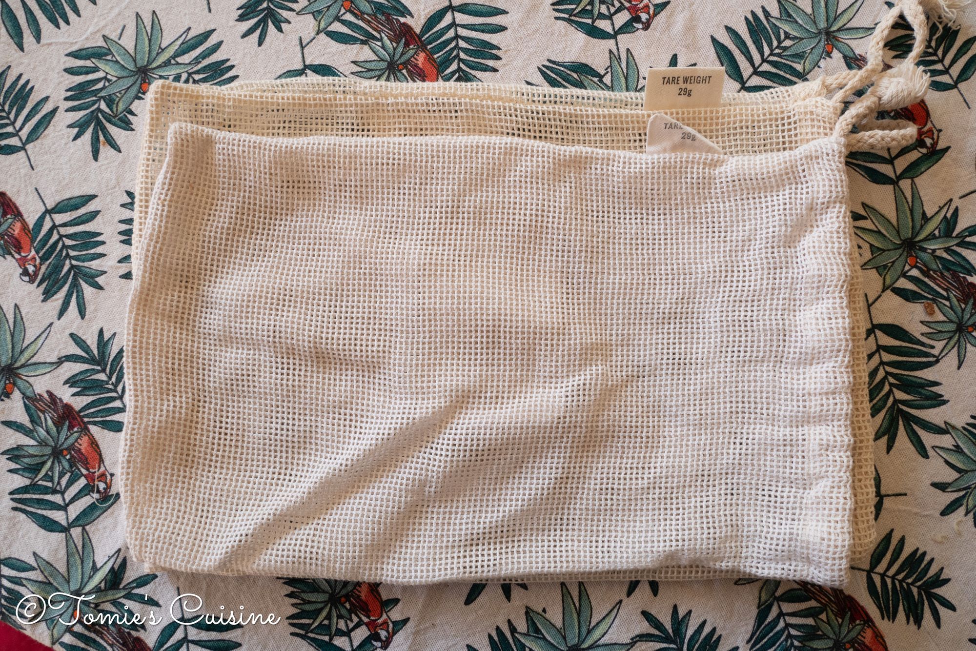 I like the idea of reusable bags to reduce single-use waste. These cotton mesh bags are very tough, but even if they break one day, I will buy a new set like this made from organic cotton. I’m not sure about the net bag or the baguette bag, though.