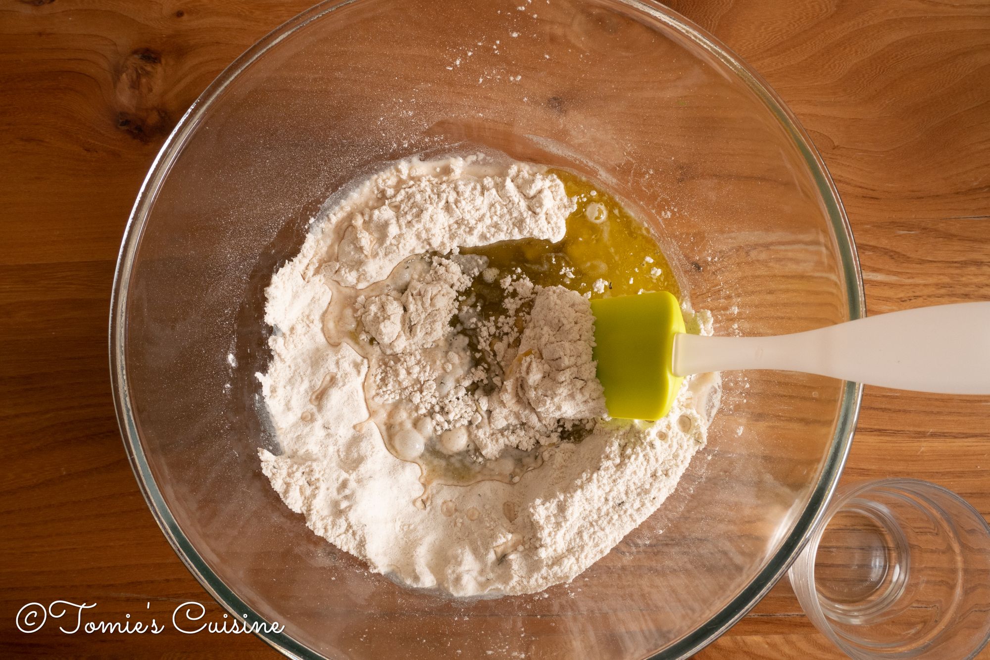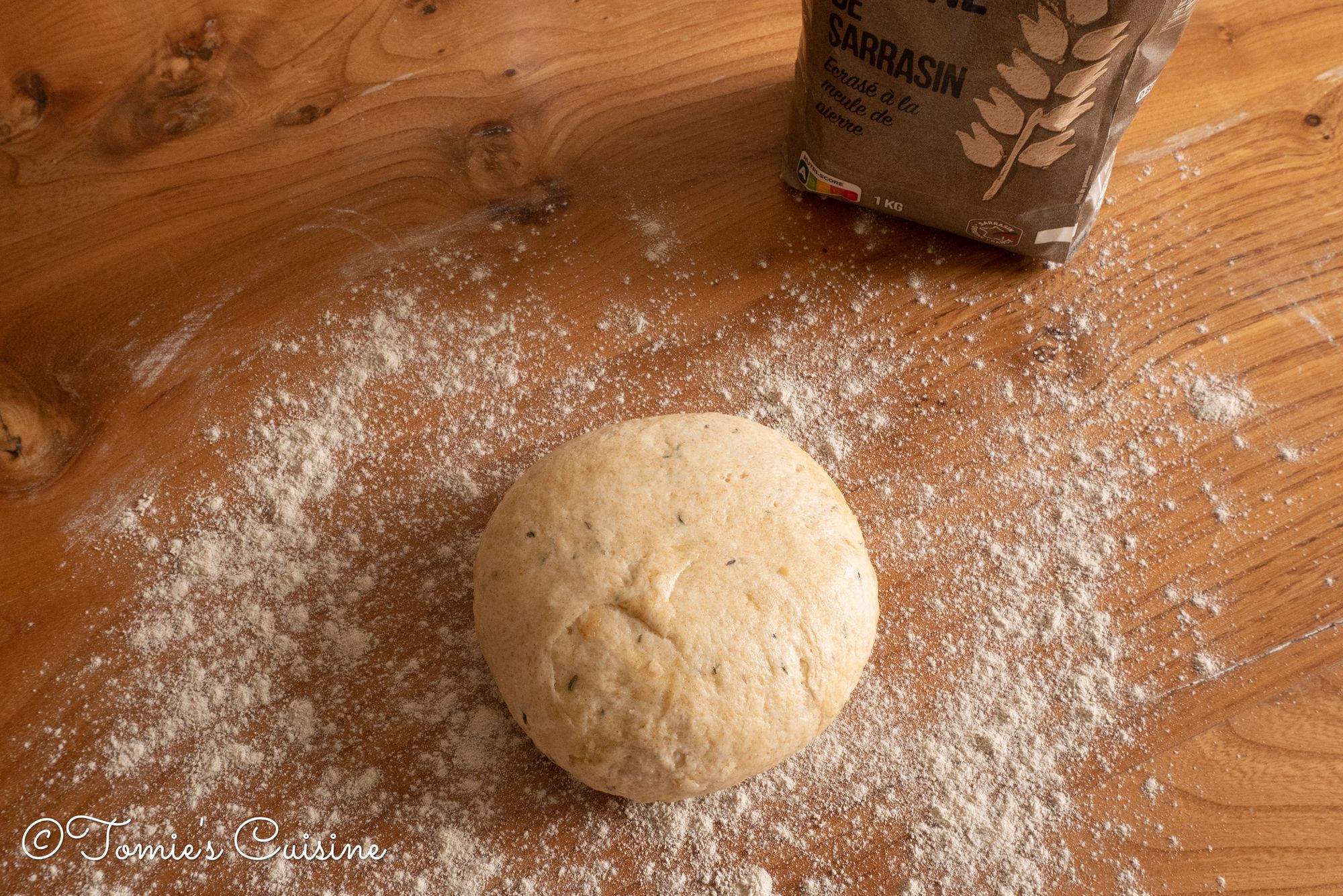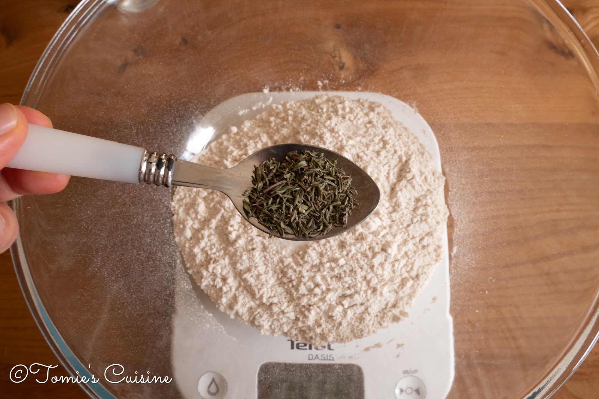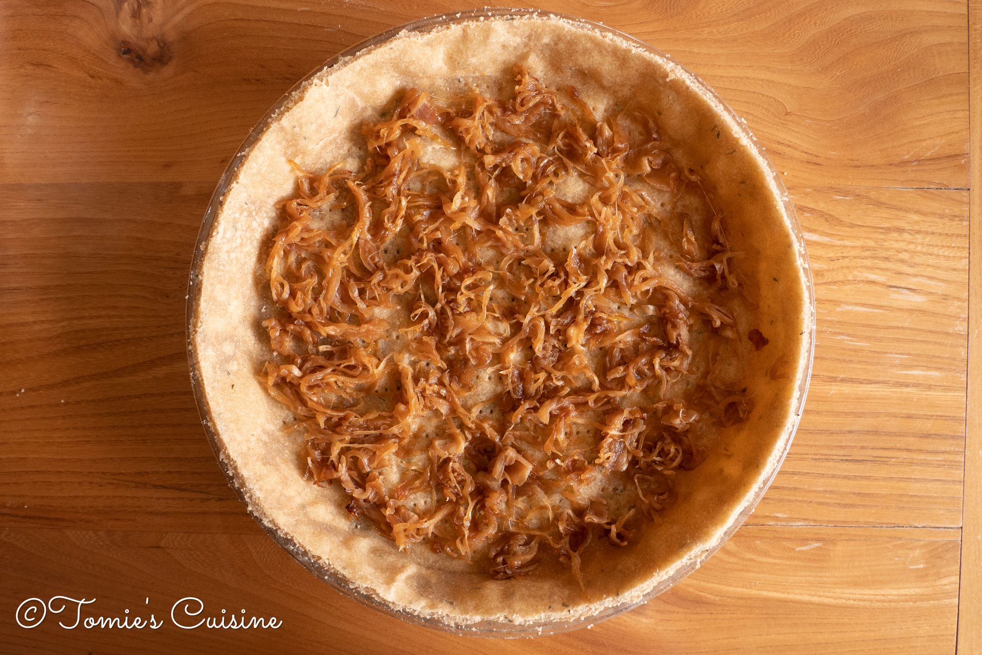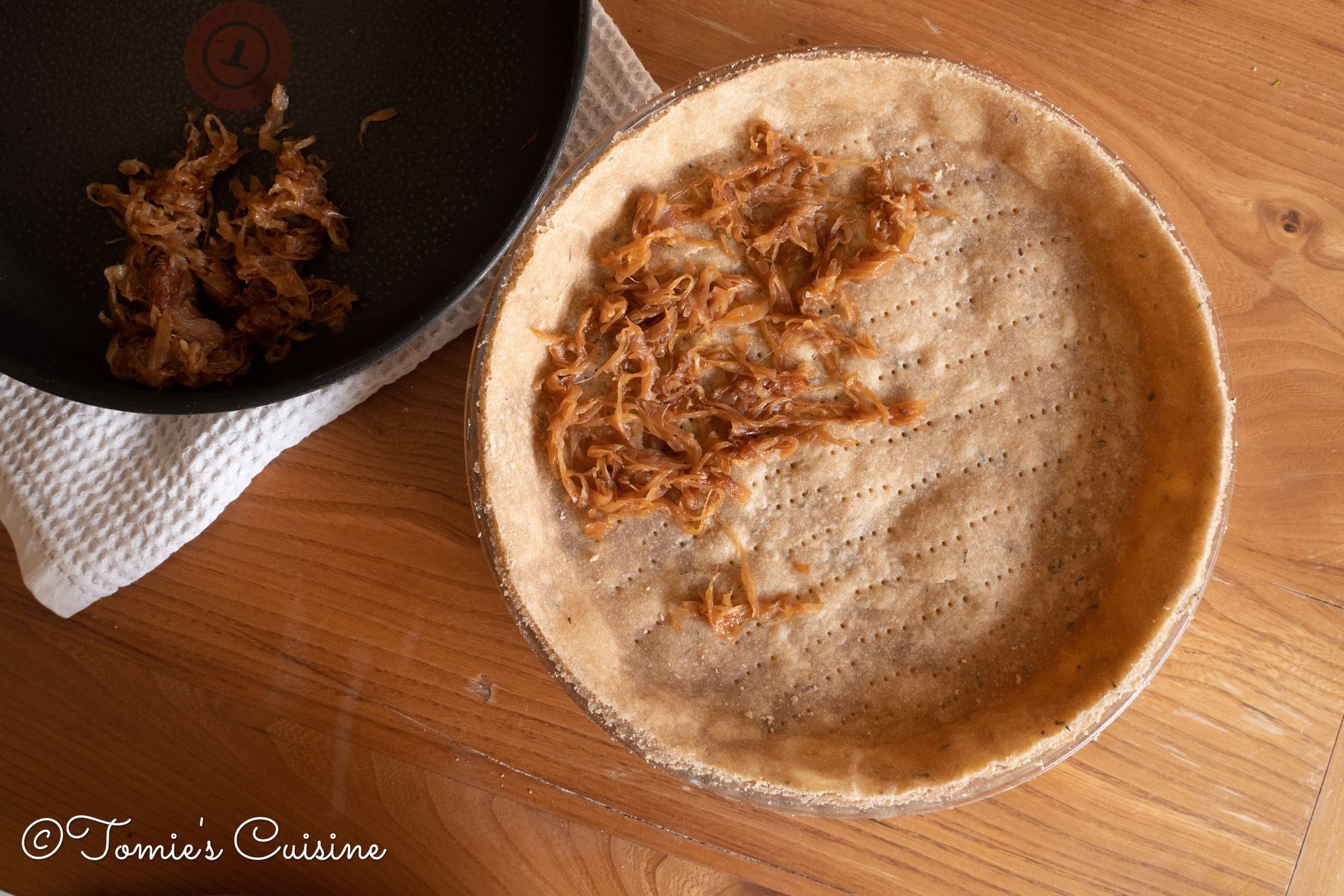 Usually, I prepare a buttery tart pastry for most of the tarts I serve, but I thought I could try something different for a change. So I made a vegan tart pastry from a recipe I found on this website. The ingredients are only T80 flour, olive oil, water, salt and herbs.