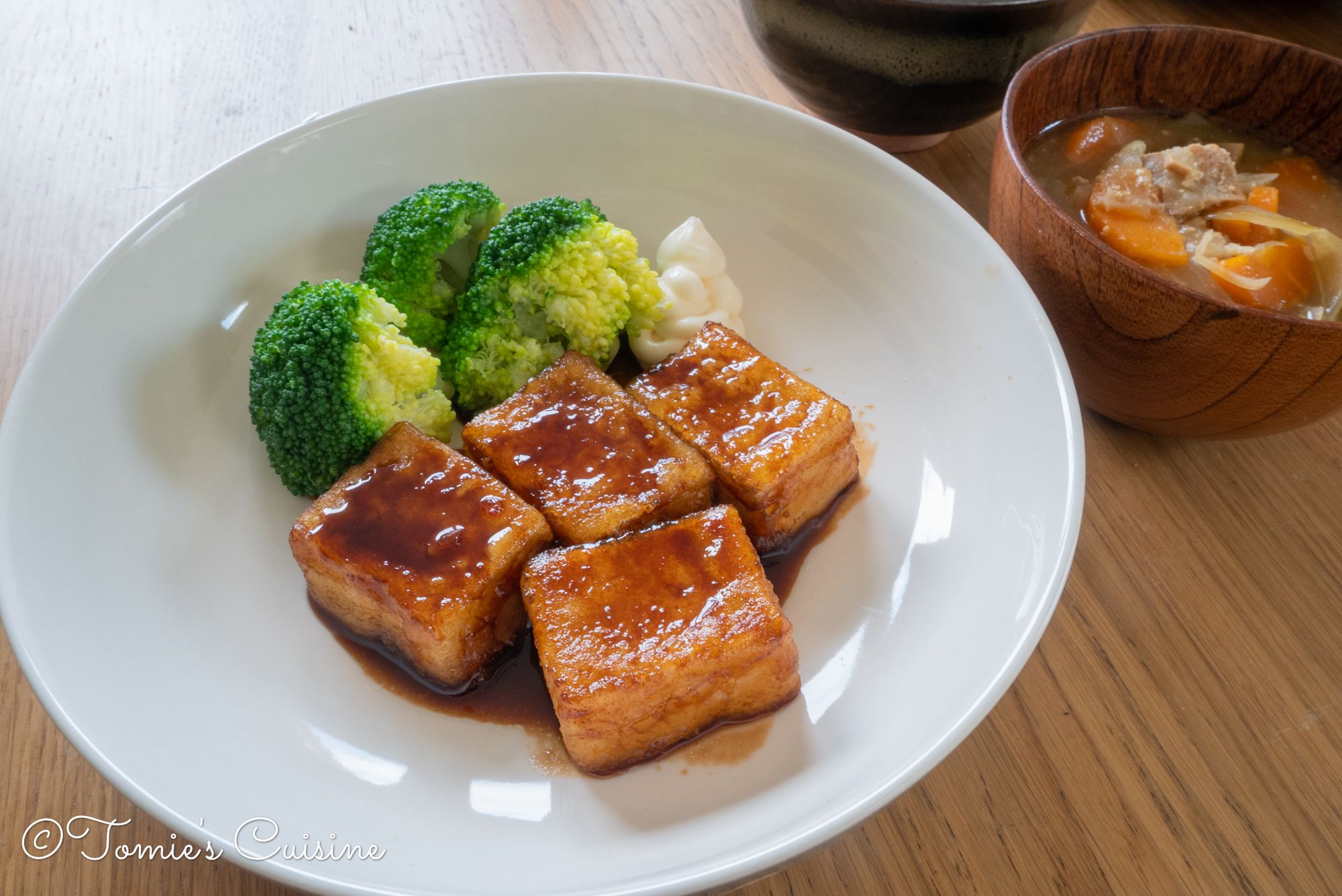 Freshly prepared tofu teriyaki is still slightly crispy on the outside, but some parts are soaked in teriyaki sauce. That goes very well with the creamy taste of tofu.