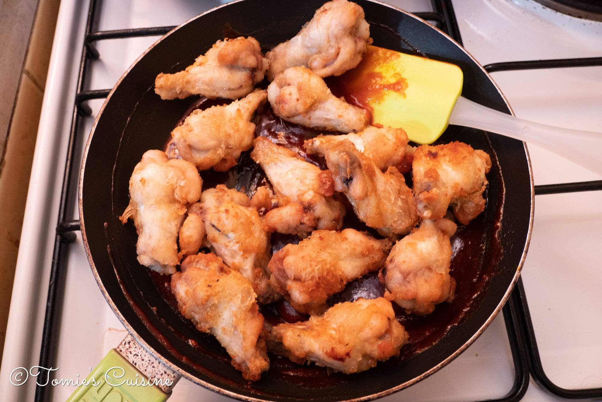 - Once you finished cooking the wings, make sure switch off the heat under the oil.