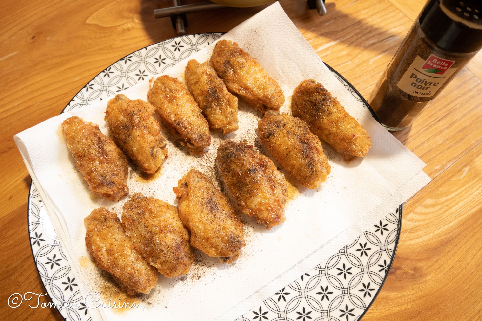 - Sprinkle the ground black pepper as much as you want on the wings, and then it’s ready to serve!