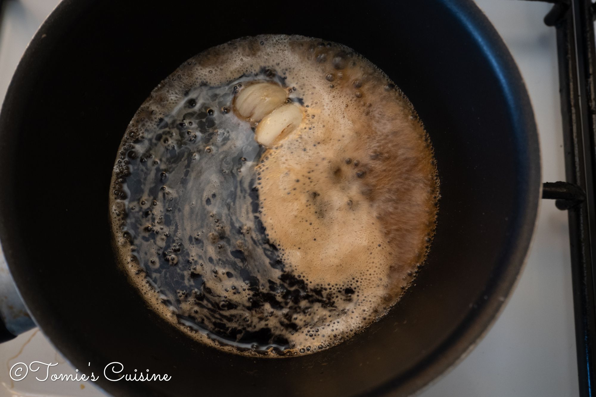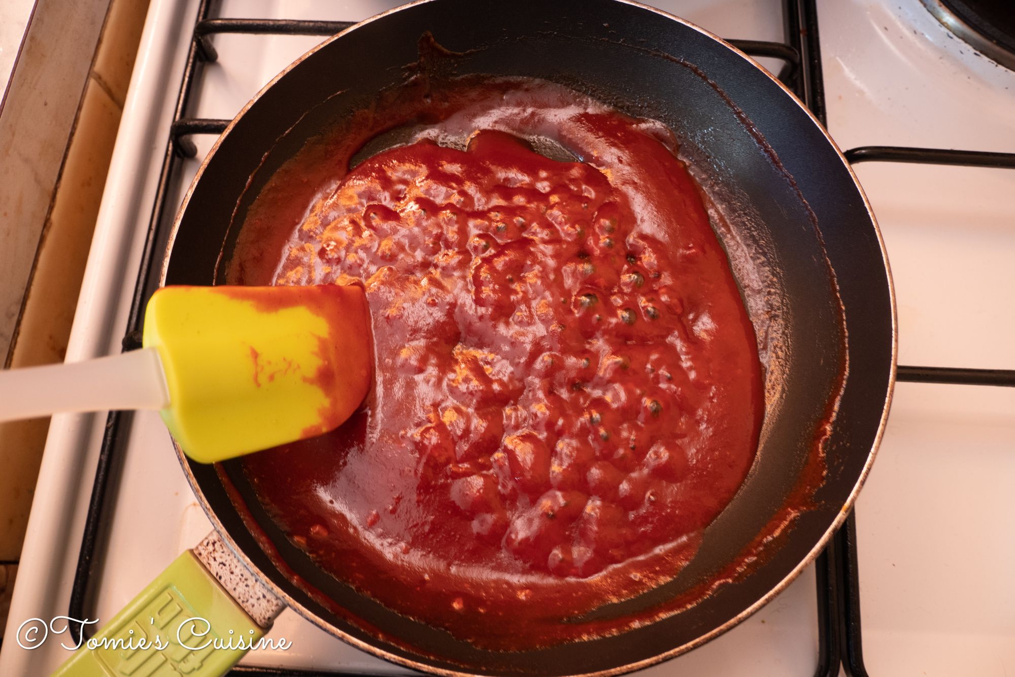 - Put it on medium heat and once it starts boiling, lower the heat and reduce the sauce to half. Then the sauce is ready!