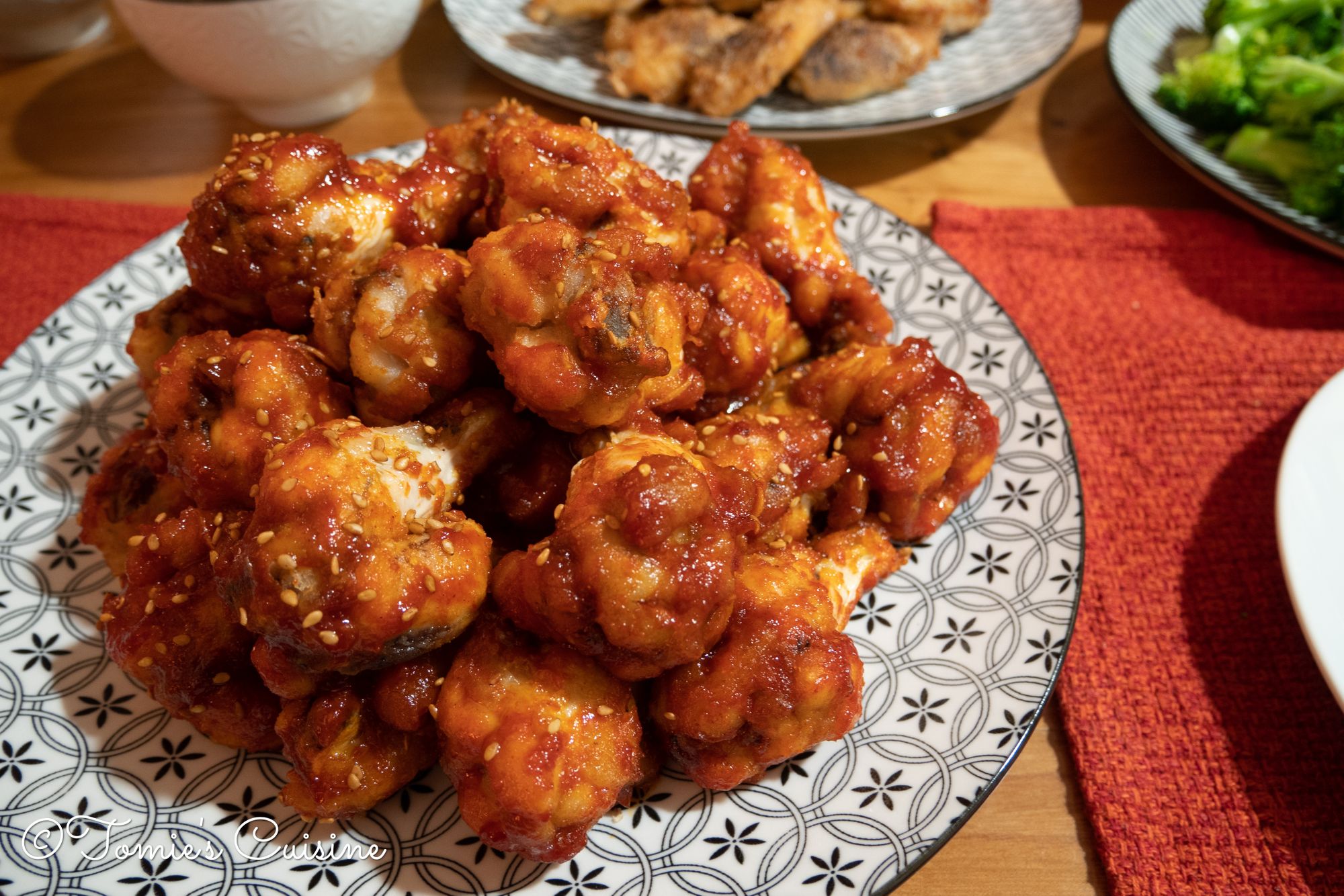 - Dip the wings in the sauce or use a cooking brush to put the sauce on the surface. (Optional: I used the wingette part for tebasaki and the drumette part to make Yangnyeom chicken (Korean style spicy chicken)