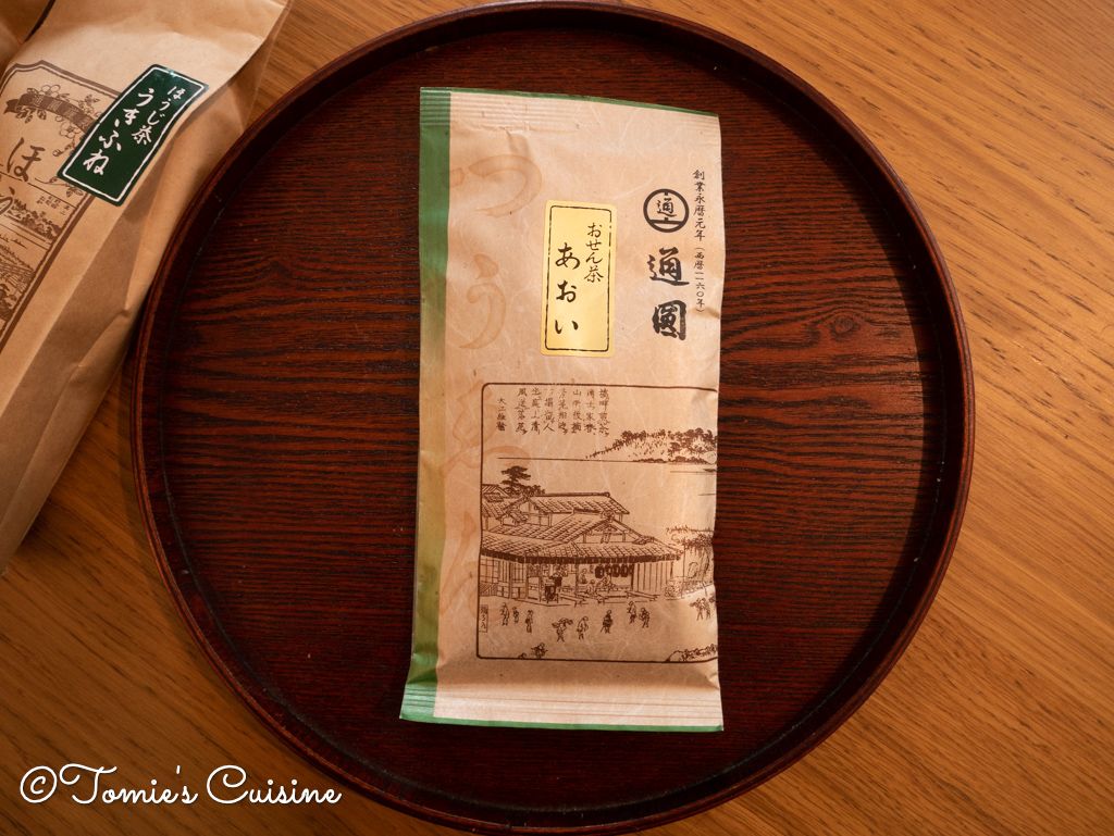 We bought some hojicha and a sencha green tea from Tsuen this time. They are called “Azumaya” and “Ukifune” from the selection of their hojicha and "Aoi" from Sencha.